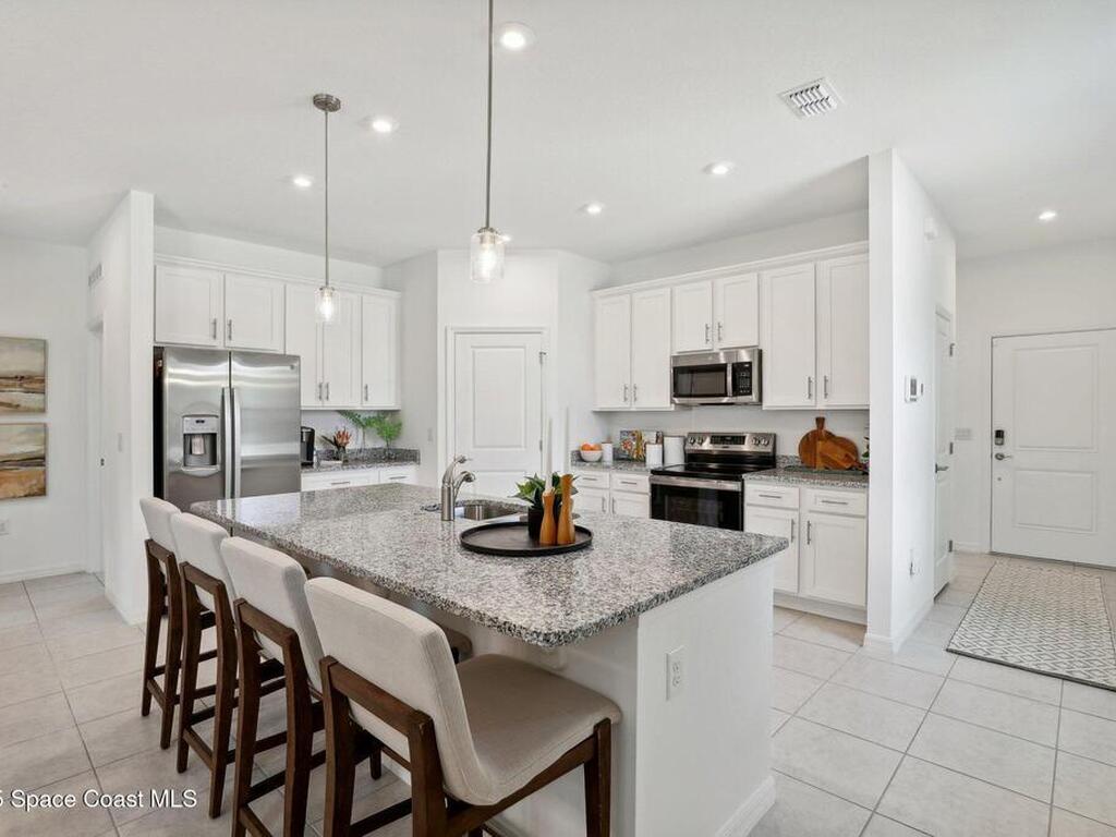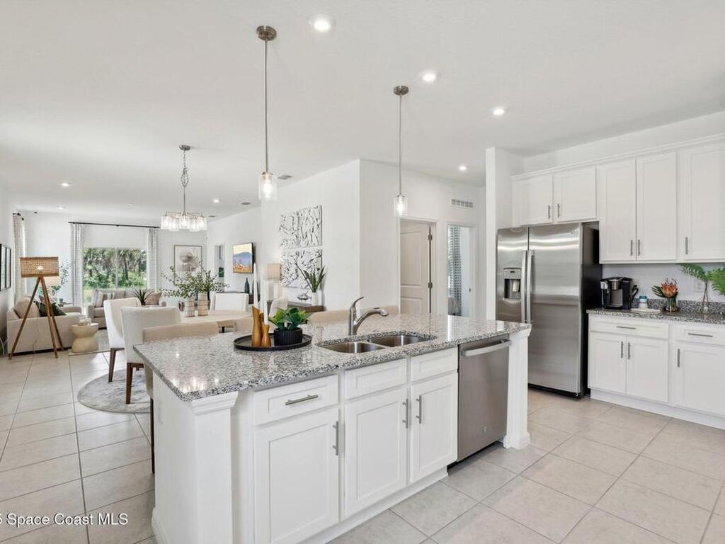 You'll be delighted by all the thoughtful details of this single-family home. An open floorplan, spacious rooms and a gorgeous primary suite create a home that's perfect for entertaining and just making the most of every day. From the inviting front porch, a foyer leads to a large kitchen with adjoining dining area and family room, perfect for hosting guests, watching movies, and relaxing after work. The open concept kitchen is outfitted with modern appliances, a beautiful center island and a full-sized pantry and the back patio is the perfect spot for evening cocktails or morning coffee. Enjoy it even more with a covered lanai. Tucked behind the main living area, you'll find a primary suite with a huge walk-in closet and double vanities as well as two more bedrooms which share a full bathroom. The open layout of this home allows you to enjoy the ease and convenience of single story living in a home that's gracious, inviting, and modern.
