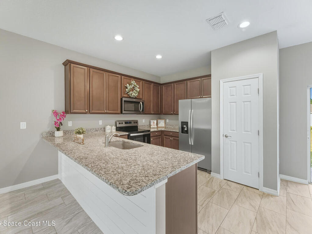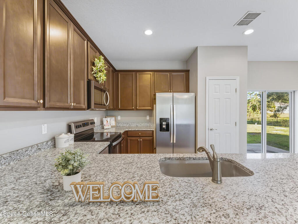 This stunning 3 bedroom 2 bathroom home is located in the heart of Palm Bay, just minutes from all of your shopping needs. Featuring an open floorplan with upgraded finishes including beautiful shaker Cabinetry, Granite countertops, stainless steel appliances, porcelain tile throughout, floor to ceiling tiled showers and so much more, it's sure to go quick! Schedule your appointment before it's gone!