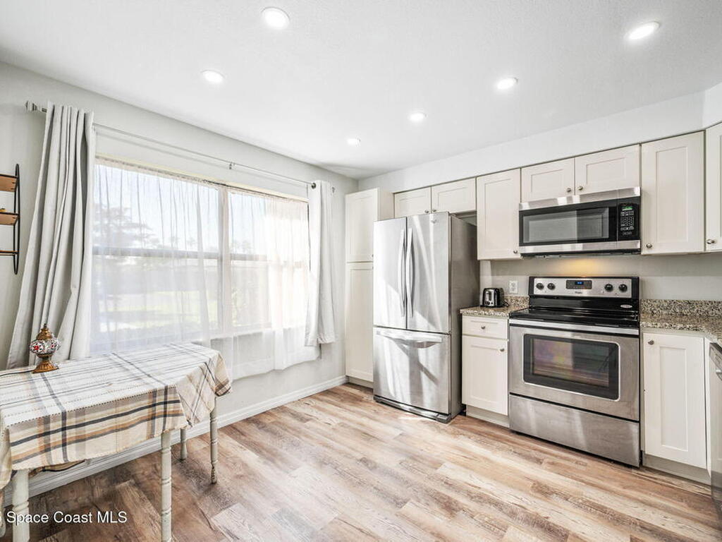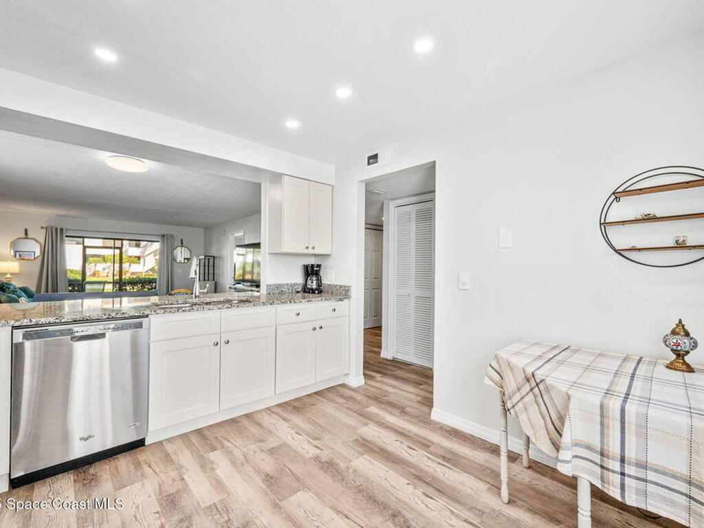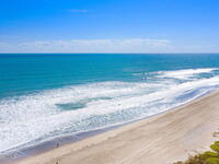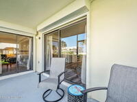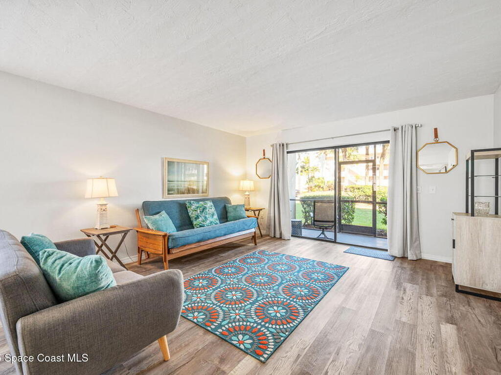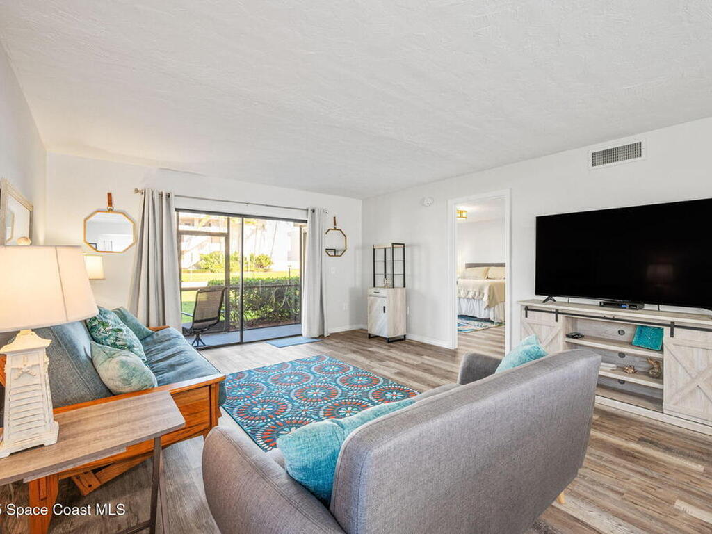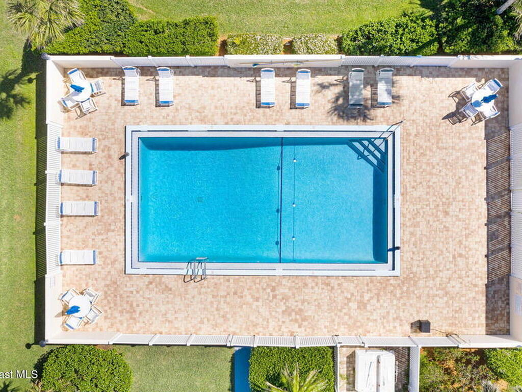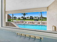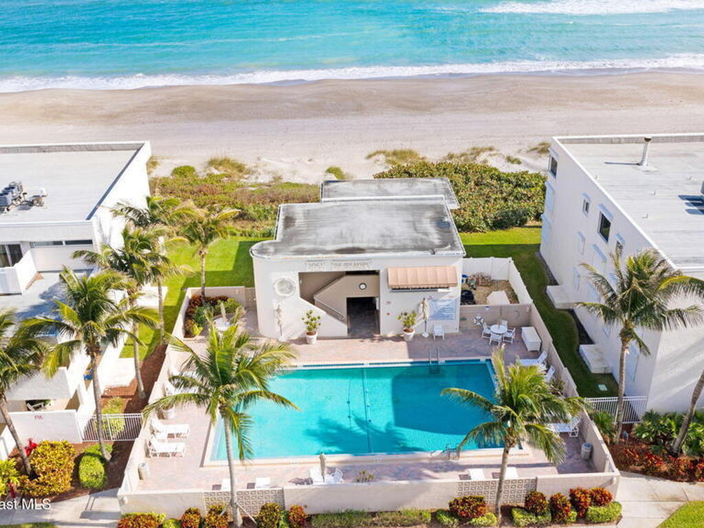 This ground floor, end condo boasts stunning views and is a short walk to the beach. Enjoy ocean breezes from your private screened porch. A new roof was installed by the association in 2025. The community features a pool, fitness center, garages, and extra storage. The HOA covers landscaping, water, high-speed internet, and cable for low-maintenance living. Located on Florida's Space Coast, you'll have front-row seats to rocket launches and easy access to golf, tennis, a library, fishing pier, bike paths, A-rated schools, and dining, just one mile south of Ocean Avenue. Nestled in a secure community, this condo is in the largest sea turtle nesting area, offering the best of coastal Florida living!