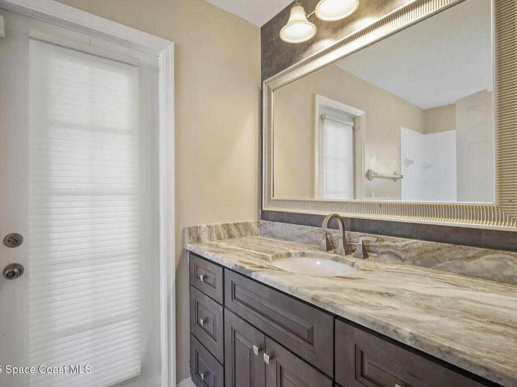 Located in the established city of Rockledge, just minutes from Viera's elegant dining, premier shopping, and entertainment, this home offers exceptional convenience with quick access to the beaches, I 95, and major highways to Orlando. Orlando International Airport is within a 45 minute drive, with nearby SpaceX, Stoke, and Blue Origin adding to the area's growing appeal. A magnificent mature oak tree creates a picturesque, shaded entry. Inside, a warm and inviting layout showcases a beautifully renovated kitchen that flows into the living area, ideal for everyday living and entertaining. New cabinetry and granite countertops are complemented by refreshed bathrooms, creating a cohesive modern feel throughout. Move in ready and beautifully maintained, the home also features a private backyard with a screened porch perfect for relaxing mornings or evening unwinds. This four bedroom home offers comfort, style, and prime location.