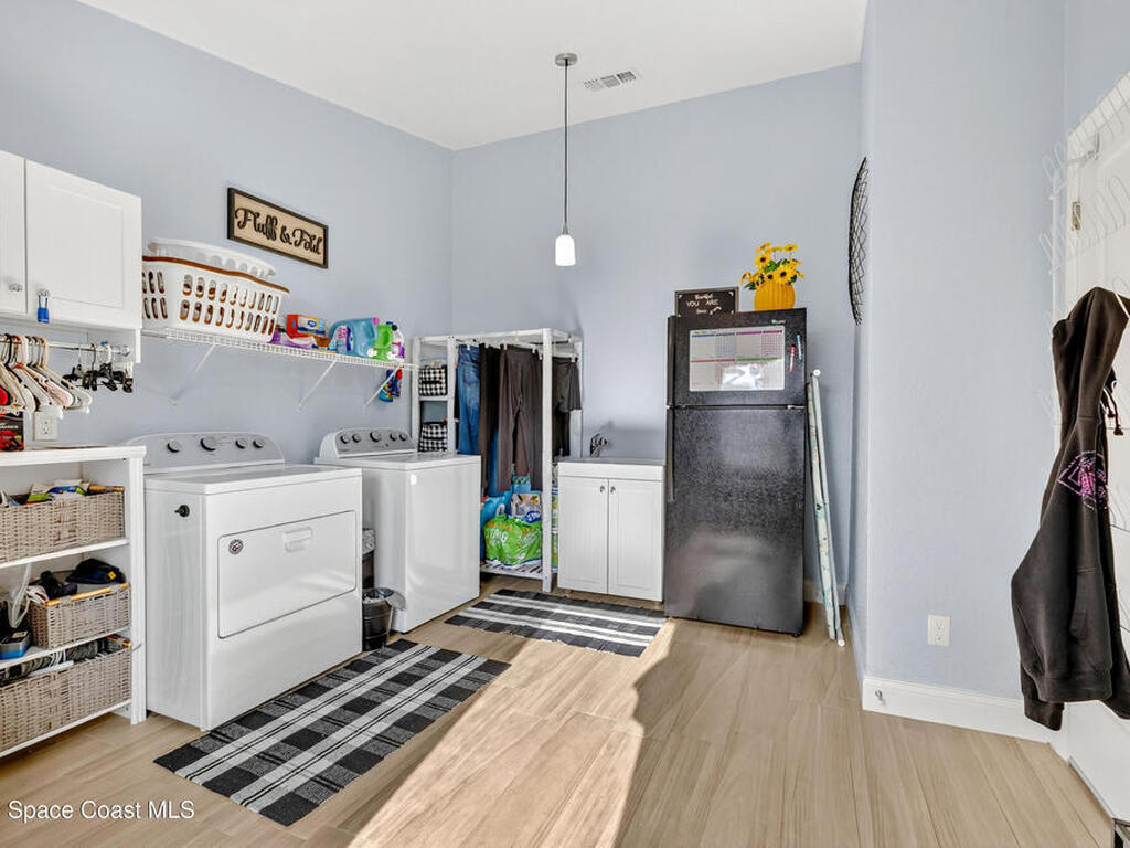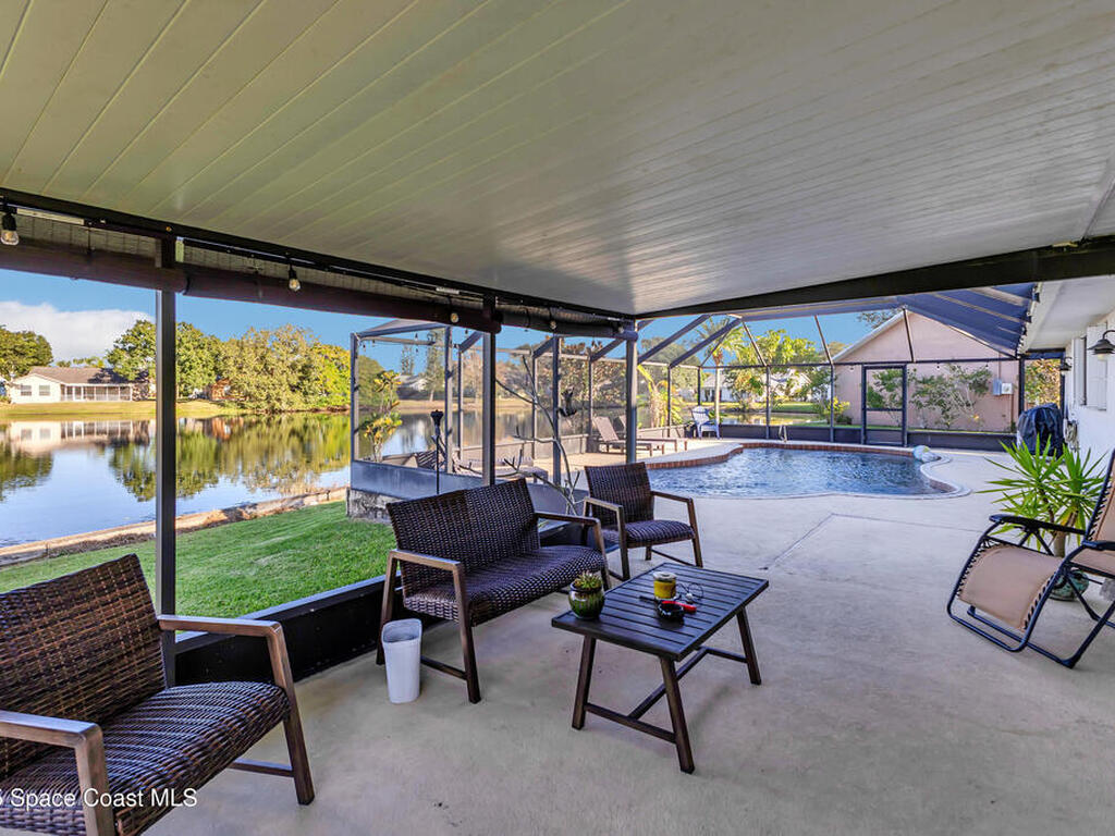 Welcome to this well-maintained home in the sought-after Viera East community. Enjoy a bright, open layout with a spacious kitchen featuring an oversized island perfect for prep and seating. The primary suite offers a comfortable, well-designed retreat, while additional bedrooms provide flexible space for guests, work, or hobbies. Step outside to a large screen-enclosed lanai with an inviting in-ground pool, ideal for relaxing or entertaining. From the backyard, take in stunning rocket launches right from home. Located minutes from shopping, dining, golf, top-rated schools, and the beaches, this property offers the best of Florida living at 1445 Ambra Drive.