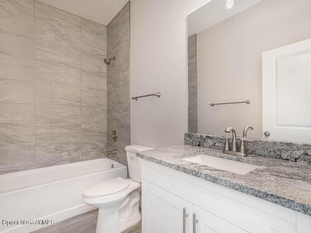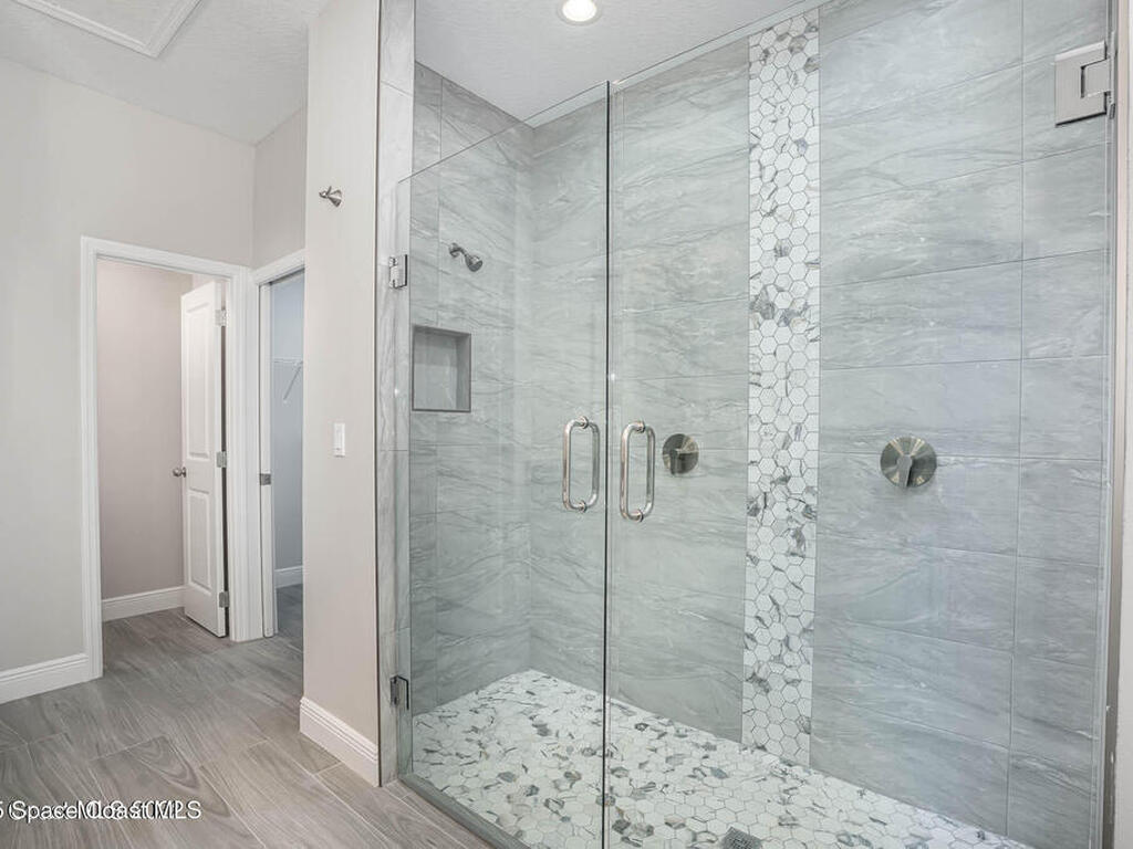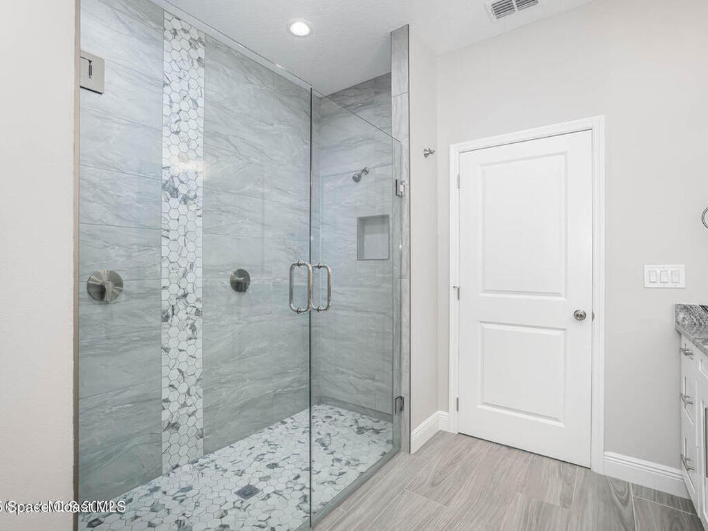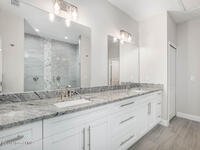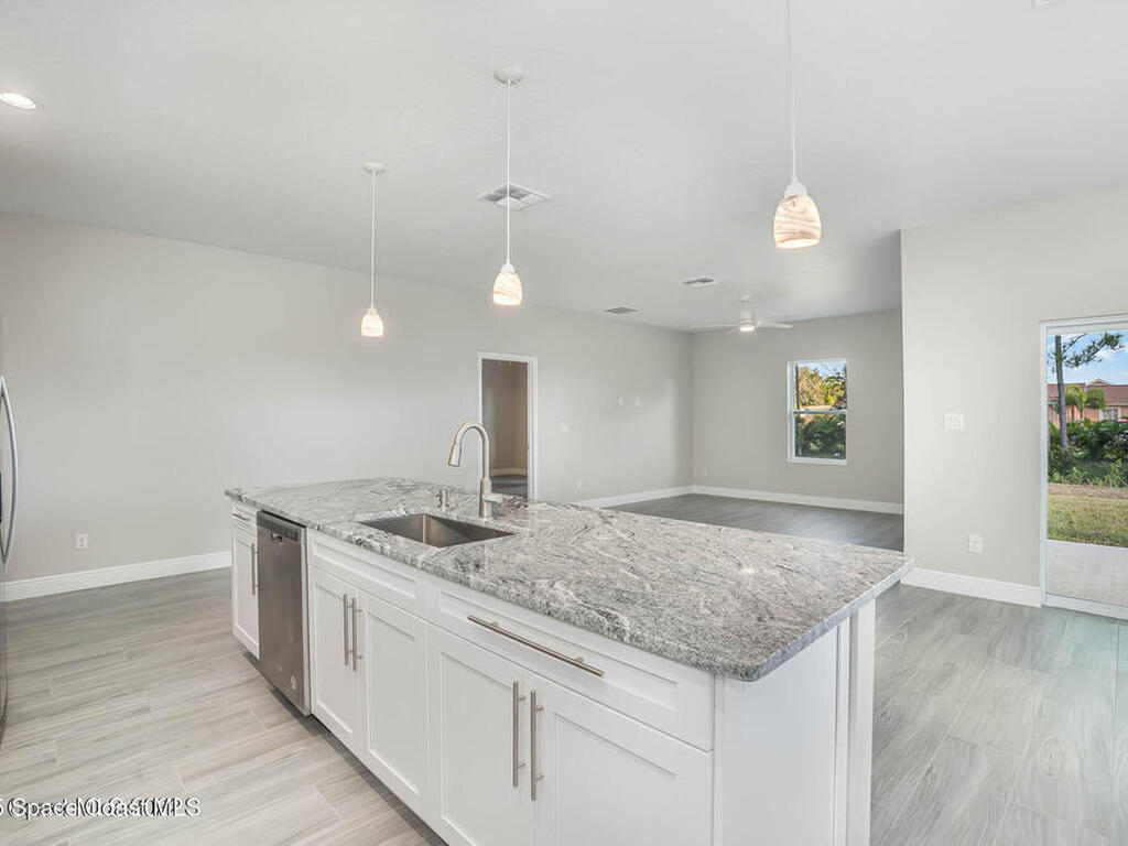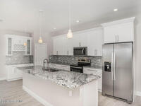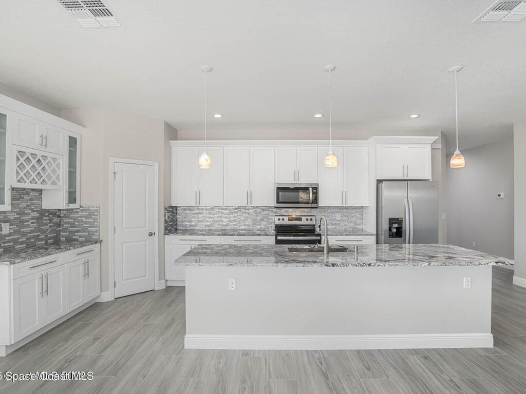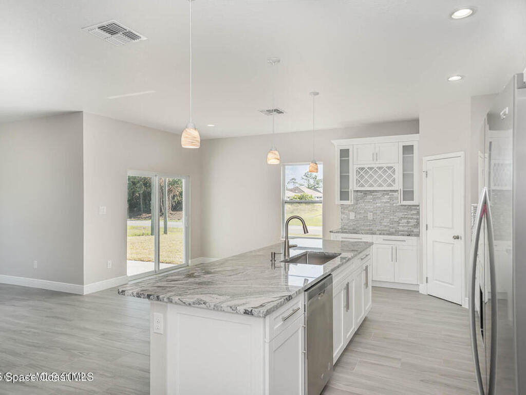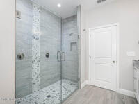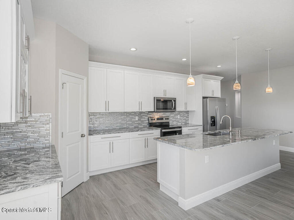 2022 built home offering a modern contemporary design with high end finishes. Entering the home you are graced with 10' ceilings and an open floorplan offering wood plank tile throughout. The bright open kitchen is designed with white cabinetry to include a wine rack, designer marble quartz countertops and stainless steel appliances. Light and bright is an understatement as the windows. pendant and can lighting brighten the home up. Large bathroom with a walk in shower to include glass doors and double shower heads, double sinks with more then enough counter space. Bathrooms are elegantly tiled with custom vanities and quartz counters to compliment the kitchen. Large Walk in closet with double entries from the bedroom and bathroom.