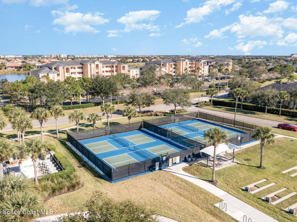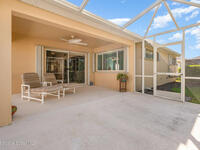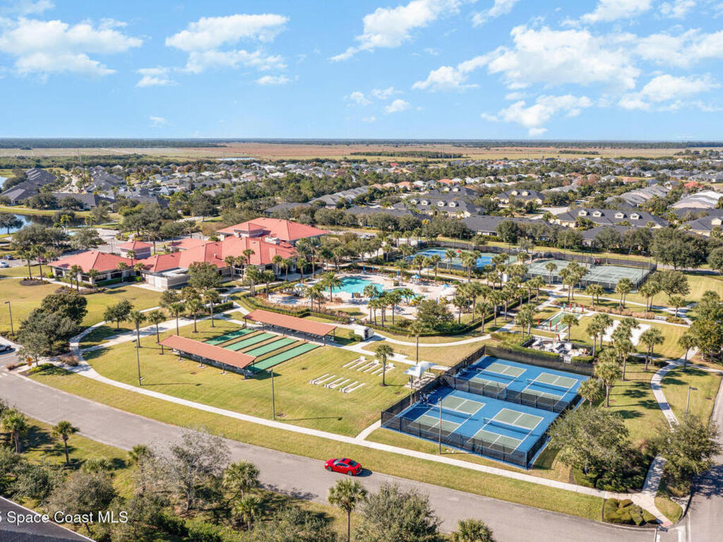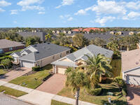 Welcome to Heritage Isle, Viera's premier 55+ guard-gated, resort-style community, offering true maintenance-free living and an unmatched lifestyle. This beautifully maintained 3-bedroom, 2-bathroom home is just two short blocks from the luxurious Heritage Isle Clubhouse, where residents enjoy a heated pool & spa, fitness center, bar/cafe, craft room, game room, tennis, pickleball, bocce ball, shuffleboard courts, and scenic jogging/walking trails.The home itself is move-in ready and features solid block construction with elegant stone-accented exterior, tropical landscaping, a screened lanai overlooking lush greenery, and a recently sealed paver driveway. Major updates include a NEW HVAC (2025), Roof (2018), and accordion hurricane shutters throughout (including the front door) for peace of mind.Inside, you'll find an inviting, open layout with tile and laminate flooring throughout - no carpet. The eat-in kitchen is equipped with all NEW stainless steel appliances: