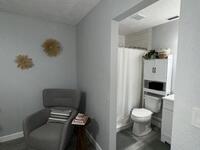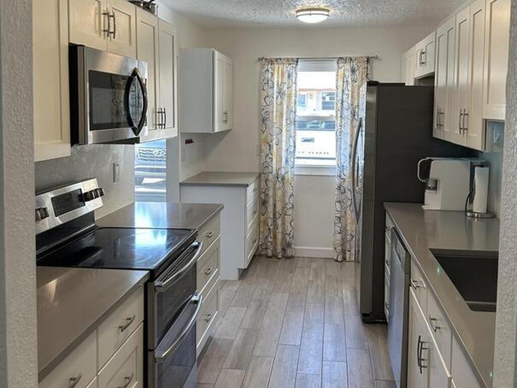 Turn-key ready, fully remodeled townhome offering comfort, style, and peace of mind with modern upgrades throughout. Featuring hurricane rated impact windows and water heater replaced in 2025. Also the roof and AC replaced in 2016. The property includes gutters and a convenient 220 outlet located at the exterior front of the home. Inside, you'll find beautiful driftwood-style tile flooring flowing seamlessly through the entire home. The kitchen is perfect for the cooking enthusiast, featuring abundant storage and a double oven. Enjoy the enclosed back porch--an inviting space for relaxing--and a separate laundry room that provides additional storage opportunities. The spare bathroom features an oversized soaker tub for a touch of luxury. With two parking spaces and a low HOA that covers cable with DVR, internet, exterior pest control, and grounds maintenance, this is truly an effortless living experience. Move right in and start enjoying everything this stunning townhome has to offer.