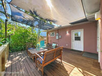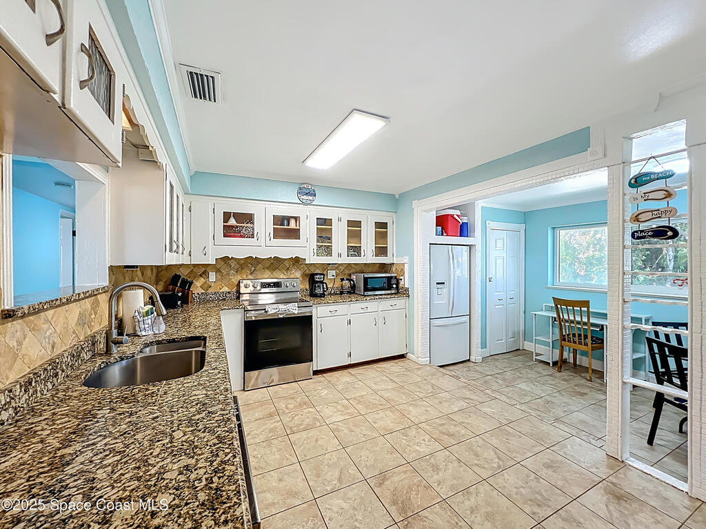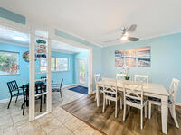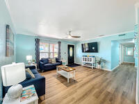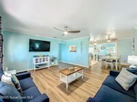 Just five-minutes stroll to the famous Cocoa Beach, this vacation gem sits on a large lot with mature trees and plenty of space to add your dream pool. This nicely sized 3-bedroom, 2-bath home features generous closets and a 2-car garage with extra storage. Tastefully furnished, it is truly move-in ready or the perfect income-producing property. This single-story home is a desirable option for vacation rentals and part time owner occupancy, or long term rental for space industry employees. NO HOA. The living area is filled with natural light and includes new ceiling fans and vinyl plank flooring. It flows seamlessly into the dining nook and kitchen, while a charming den with French doors opens to the spacious backyard oasis. Enjoy the fire pit, shaded dining/seating deck, and ample room for gatherings or even watch rocket launches! The cozy front porch is the ideal spot to unwind and take in the sunset. The roof was replaced 2021, water heater and washer&dryer 2023, dishwasher 2024.