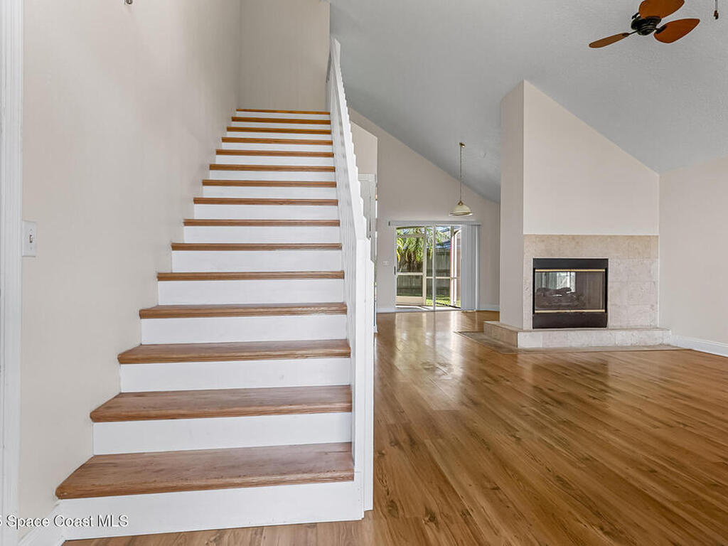 Discover this charming pool home full of character, located on a well-maintained and attractive street. Step inside to a bright and airy layout featuring good-looking laminate flooring throughout the living areas and solid oak steps on the staircase. The kitchen and bathrooms have been tastefully updated with black cabinetry, granite countertops, tile flooring, and soft-closing drawers--including a pullout trash bin, two pantries with pullout drawers, and a new stove. Enjoy spacious bedrooms, each offering walk-in closets, plus a cozy fireplace for added comfort. Additional highlights include AC, an instant water heater, and a recently painted exterior. Outside, relax in the screened-in pool area overlooking the fully fenced yard. The home also features a tile roof, a 2-car garage with a convenient side door, and excellent curb appeal. This bright home offers remarkable potential to truly shine--don't miss the opportunity to make it yours.