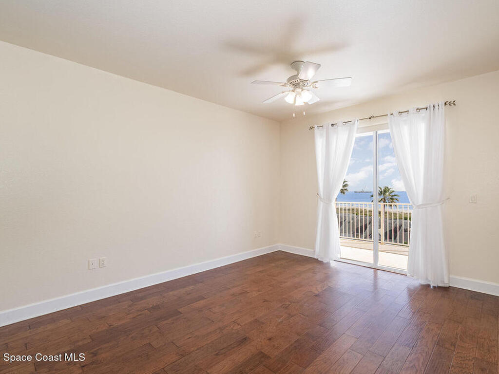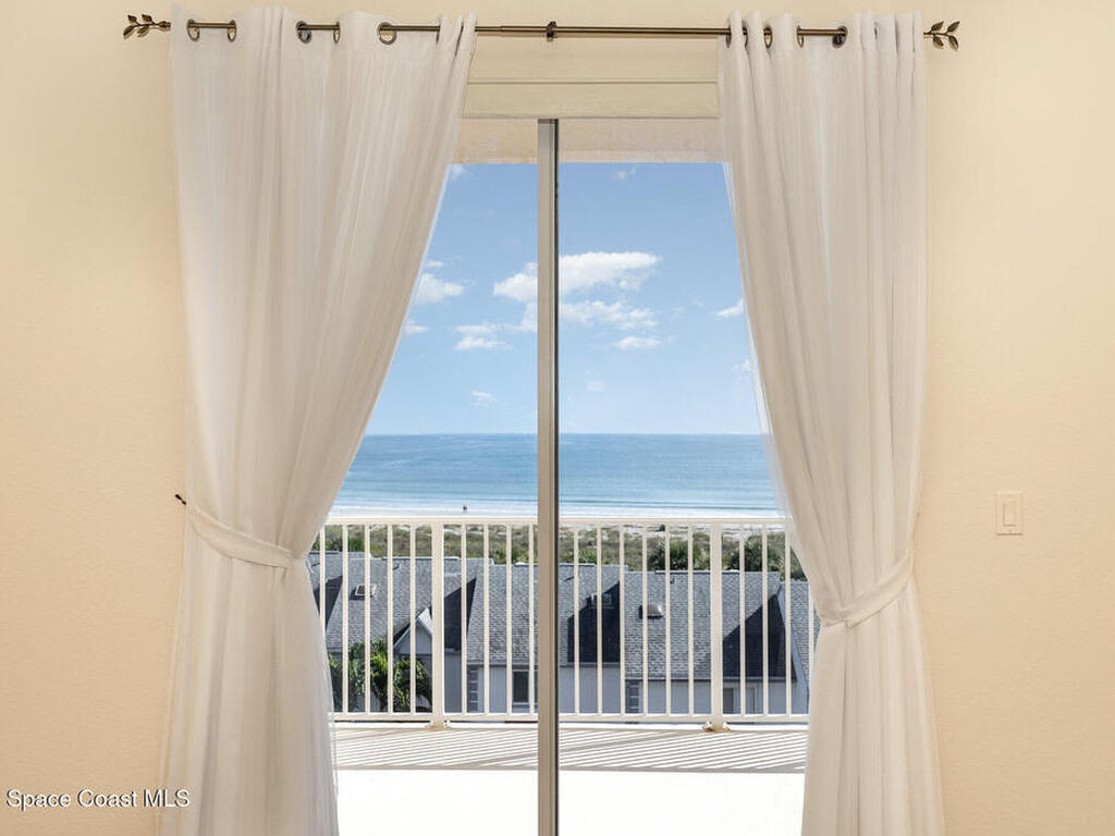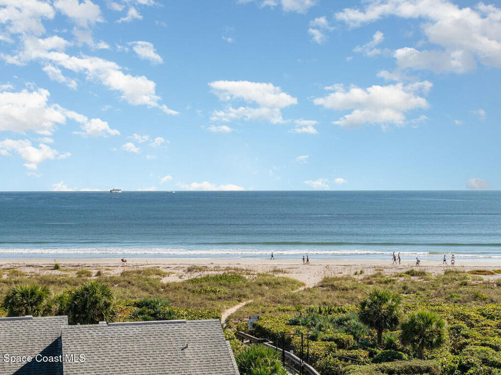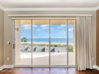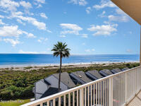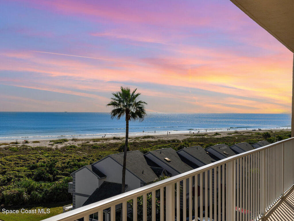 DIRECT OCEANFRONT TOP-FLOOR CONDO! Experience coastal living at its finest in this direct oceanfront penthouse, where breathtaking unobstructed views of the Atlantic stretch as far as the eye can see! From the moment you step inside, the ocean becomes your backdrop : from the private balcony, living room, kitchen & primary bedroom. Spacious 3-bedroom, 2-bath unit boasts of 10-foot ceilings, large laundry room, updated ceramic tile and wood flooring, modern kitchen with upgraded quartz countertops. AC & water heater replaced two years ago. Located in a private, gated, resort-style community with nighttime security & incredible amenities: 4 pools (lap, kiddie, family, hot tub), tennis, pickleball & racquetball courts, clubhouse with fitness center, exclusive beach access & a sun deck perfect for relaxing. Only 15 minutes from Kennedy Space Center, one hour from Disney World, Universal, SeaWorld, and downtown Orlando. Your dream oceanfront retreat awaits! This one is a major steal.