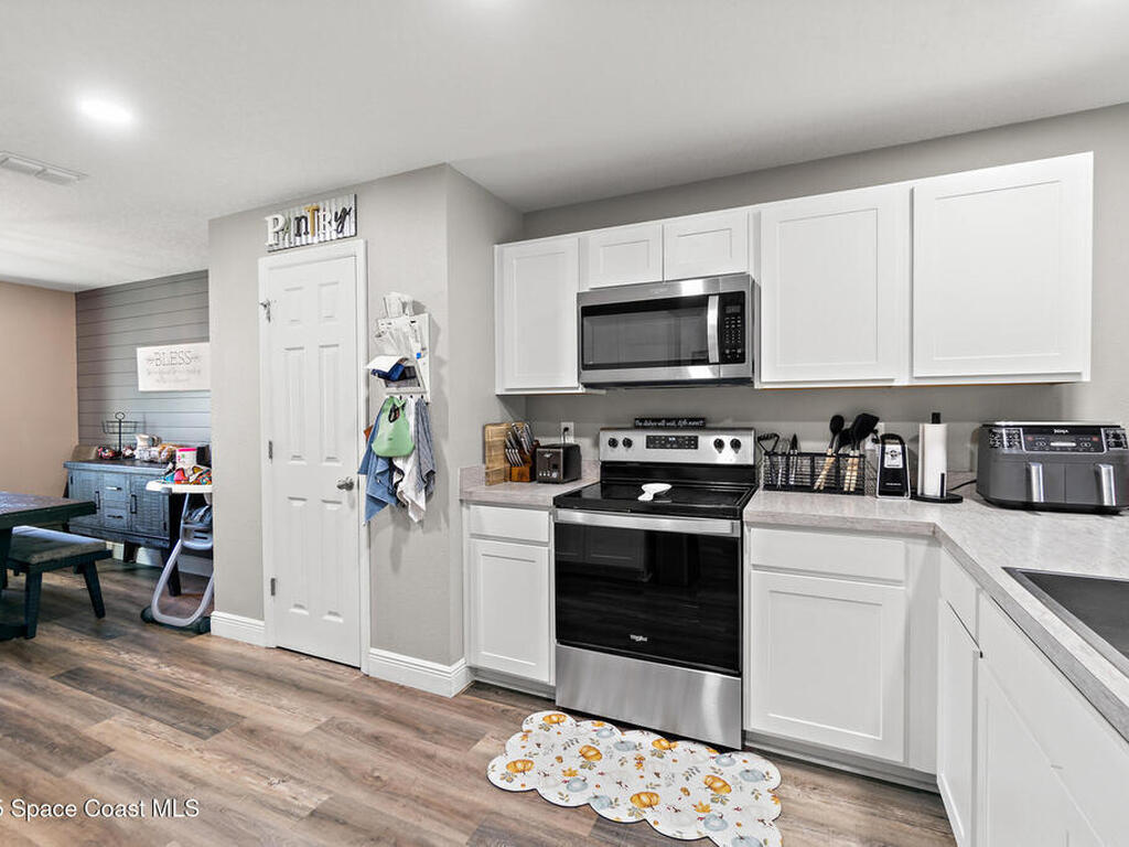 Here's your chance to own a Pinterest Perfect home! This stunning 3 bedroom, 2 full bathroom, 3 car garage home was built in 2023. It has plenty of room for your family with over 1, 800 square feet of living space. The inside features vinyl flooring throughout, neutral paint colors, indoor laundry room, an open concept kitchen with white shaker style cabinets and stainless-steel appliances. Master bedroom features custom molding, large shower, and oversized walk-in closet. The outside features a large backyard with a vinyl fence, large storage shed, and an irrigation system. The garage is currently being used as a home office that is equipped with a Mini split AC and flooring.