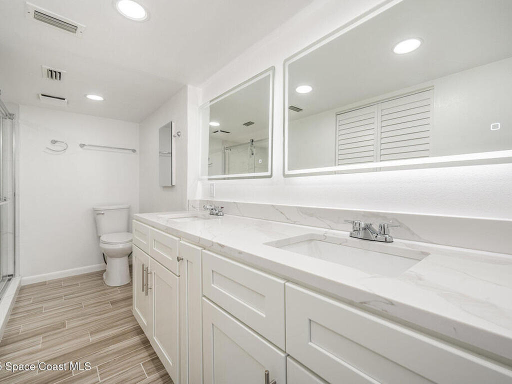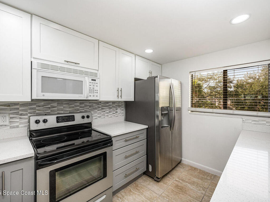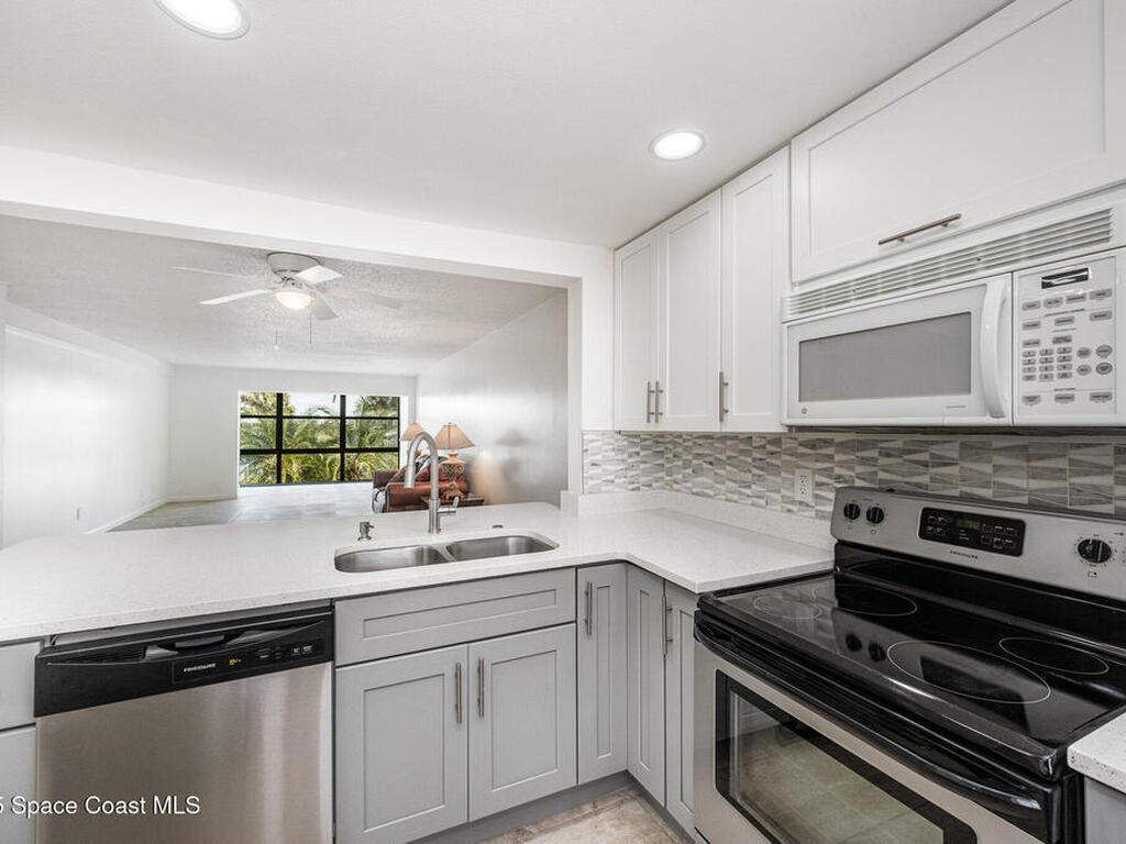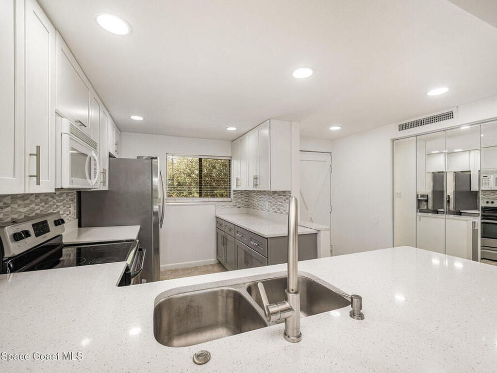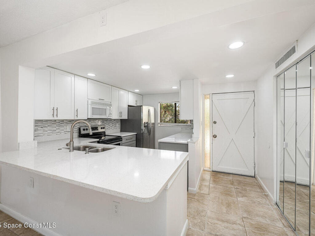 Completely remodeled riverfront condo with 1, 412 SF of updated living space, perfectly positioned off of the Banana River of Cocoa Beach in the serene Anchorage community. This modernized unit features a NEW kitchen with all-wood cabinetry, quartz countertops, stainless appliances, updated baths, NEW flooring, lighting, and fresh paint throughout. Enjoy 2 bedrooms plus a large attached bonus room; ideal for an office, fitness area, or extra storage. The primary suite offers a slider to the new concrete-enclosed Lanai, prime for rocket launches, with impact glass and peaceful river views. Additional features include abundant natural light, NEW HVAC (2024), NEW water heater (2025), covered carport, and washer/dryer hookups. 1 Pet up to 20 lbs & 3 Month Rental minimums. Anchorage provides a quiet riverfront setting with a community pool and dock, with potential boat slip usage ~ just minutes to Cocoa Beach dining, shopping, parks, and the Atlantic Ocean.