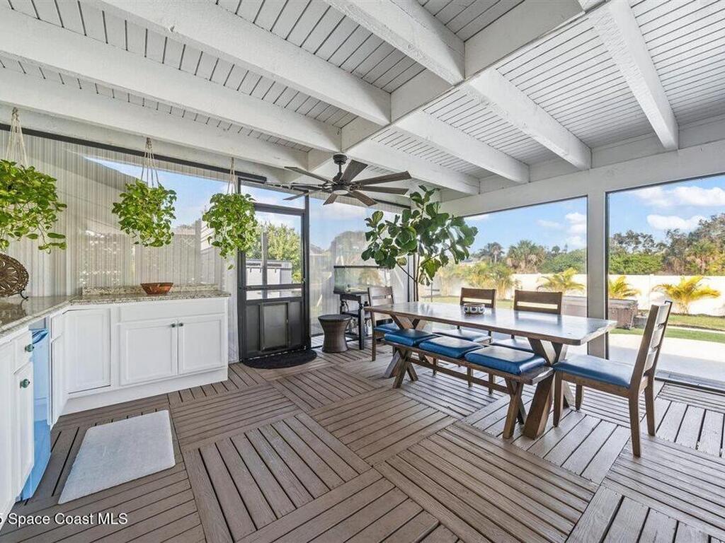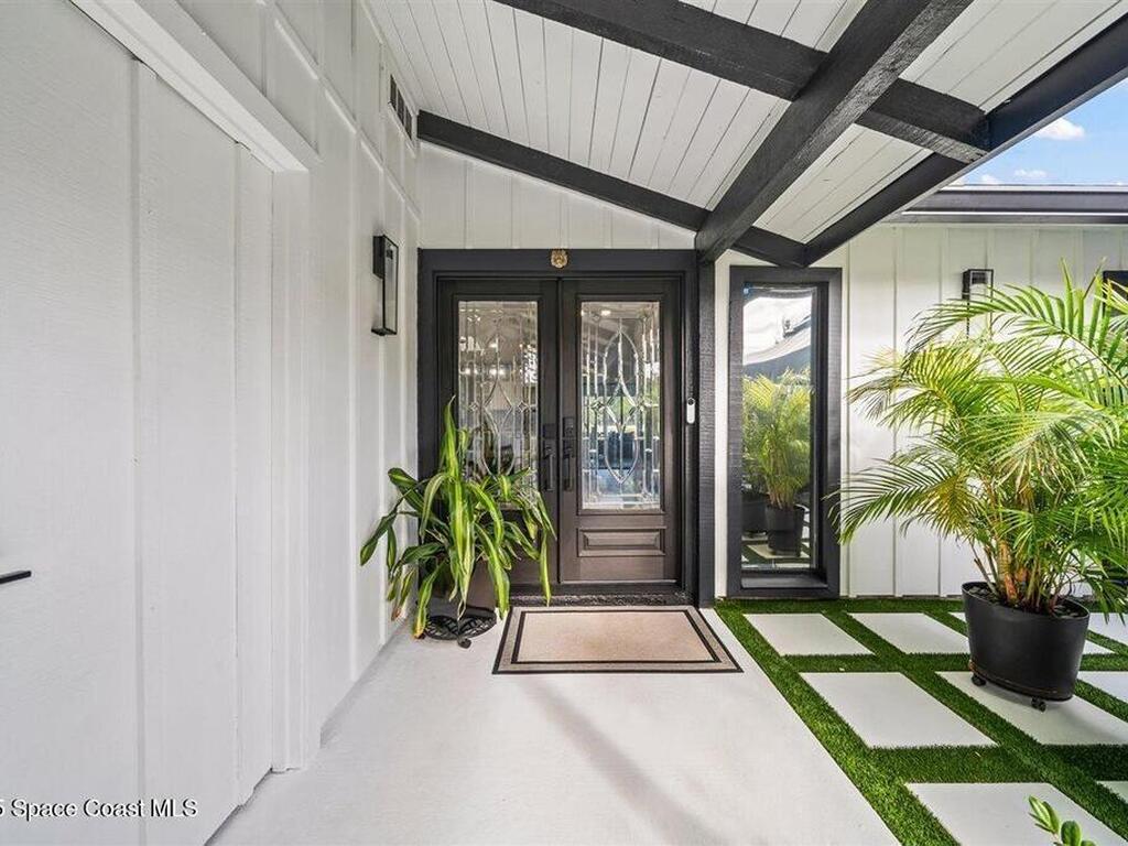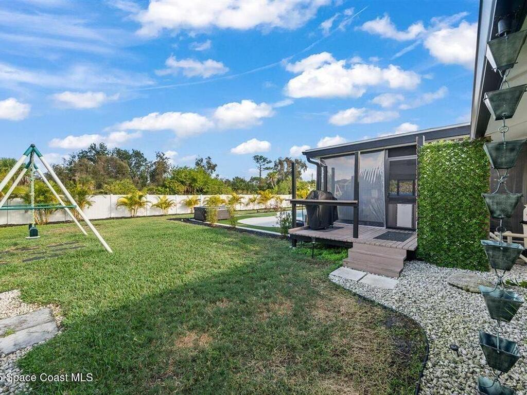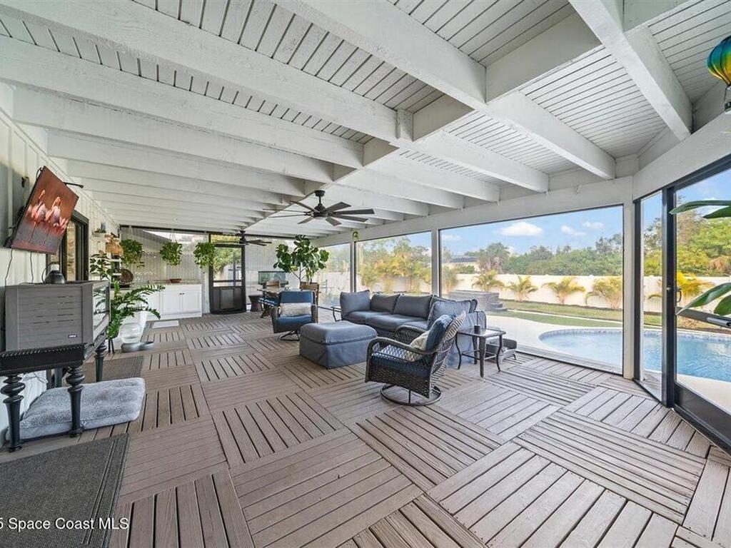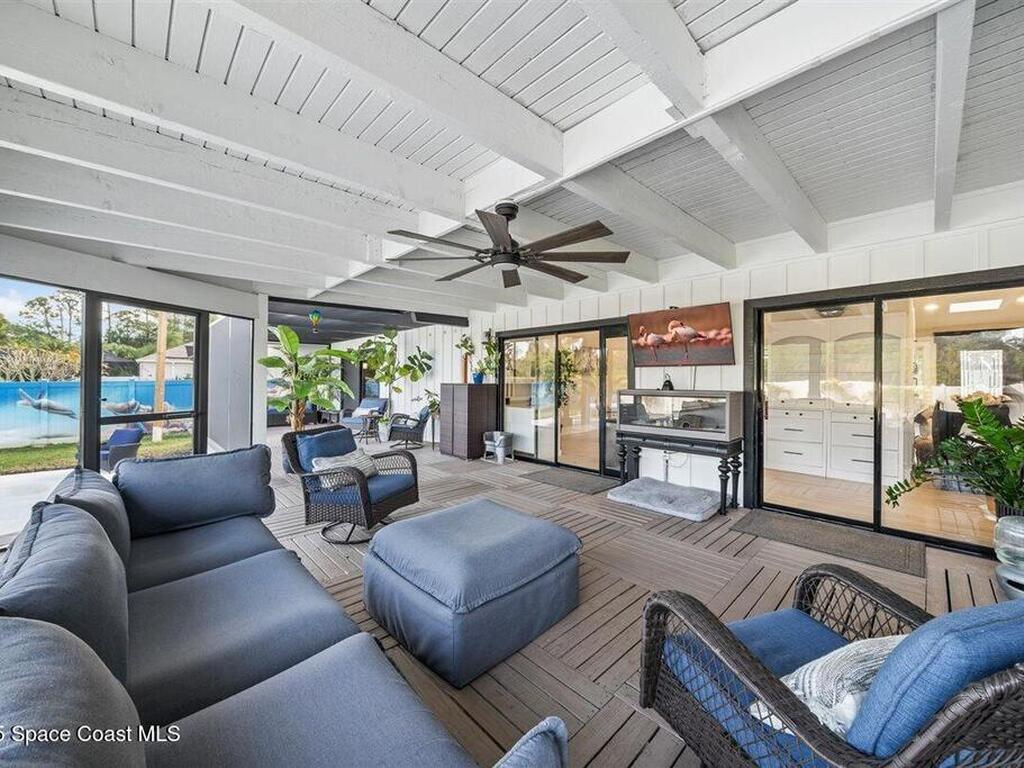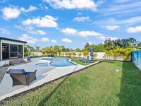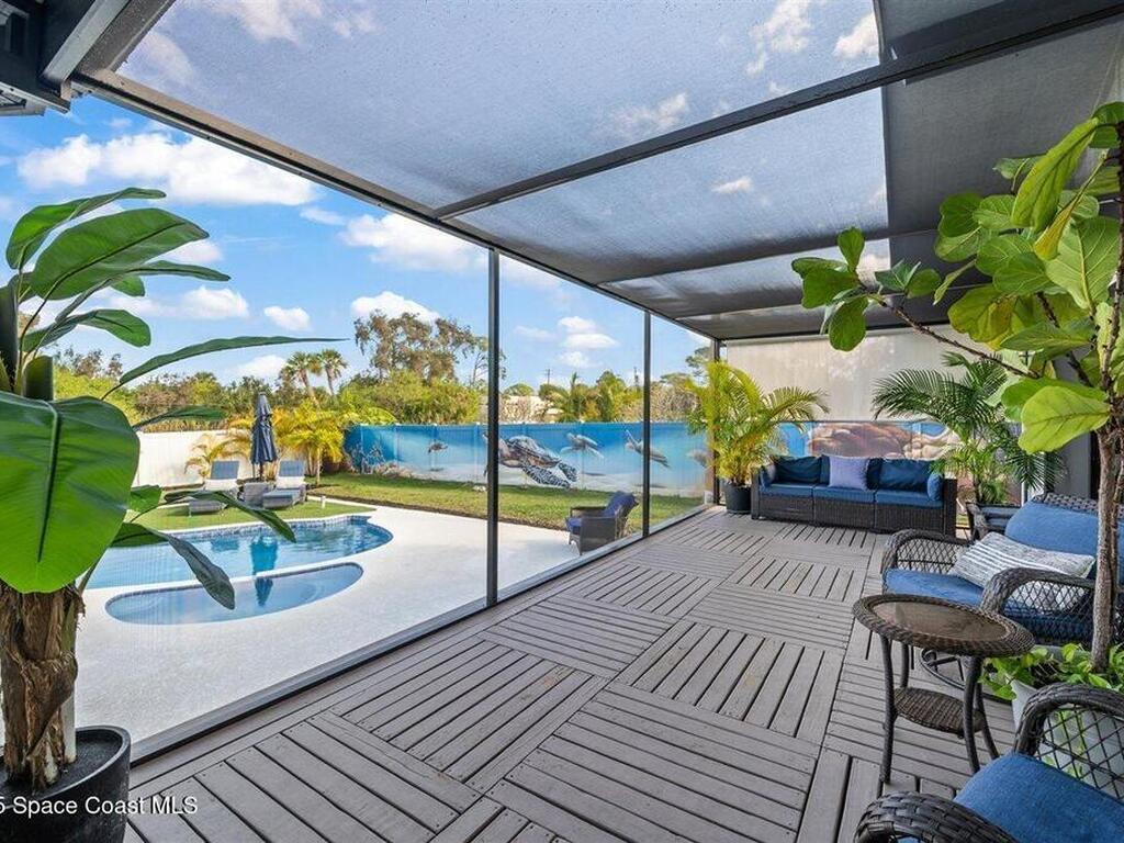 Welcome home, where thoughtful design & quiet luxury make this sanctuary unforgettable. Set on an oversized, newly re-landscaped lot, this pool retreat has been transformed with timeless upgrades--from the new roof & skylights to the handcrafted Hardie-board exterior that wraps the home in comfort & durability. The elevated deck has been rebuilt & skirted in Hardie-board for a seamless look, while the screened porch, fresh sod, & private grill deck with a dedicated gas line create outdoor spaces perfect for lingering sunsets and effortless entertaining.Inside, natural light pours through impact slider & across warm LVP floors, highlighting a mahogany front door & a reimagined fireplace wall that anchors the living space. Every corner reflects care: remote-control shades, dimmable lighting, rebuilt garage AC, added insulation, upgraded electrical, clear-water well sprinkler, built-in closet system, & a transferable termite bond. This is a home ready for its next cherished chapter.