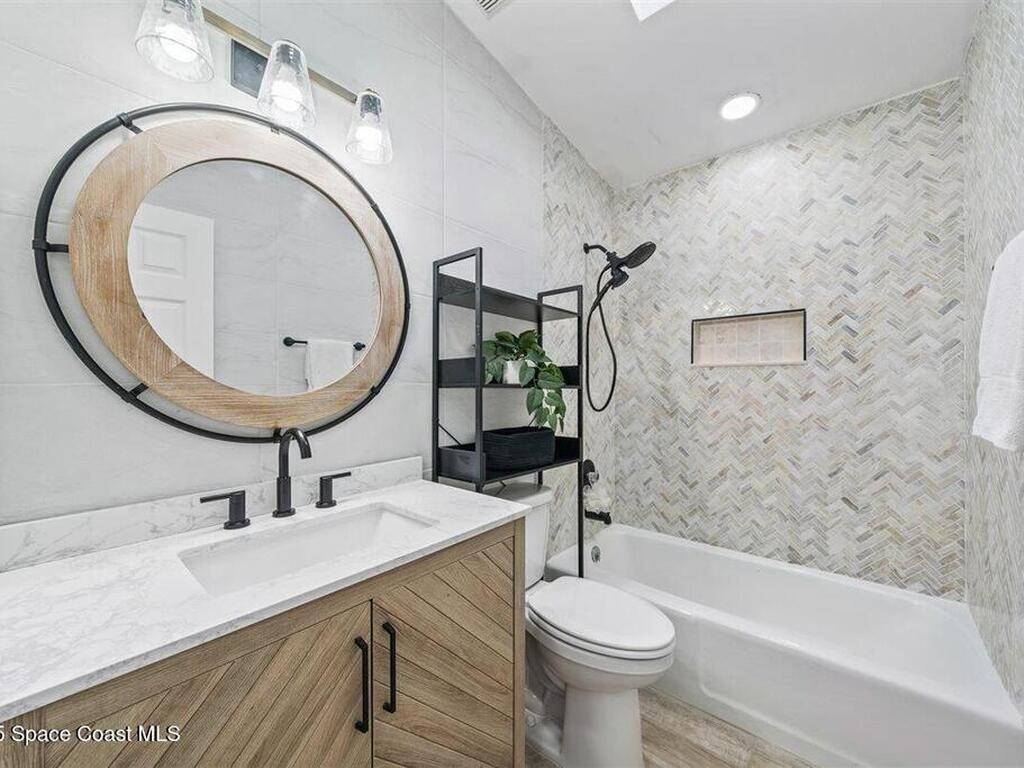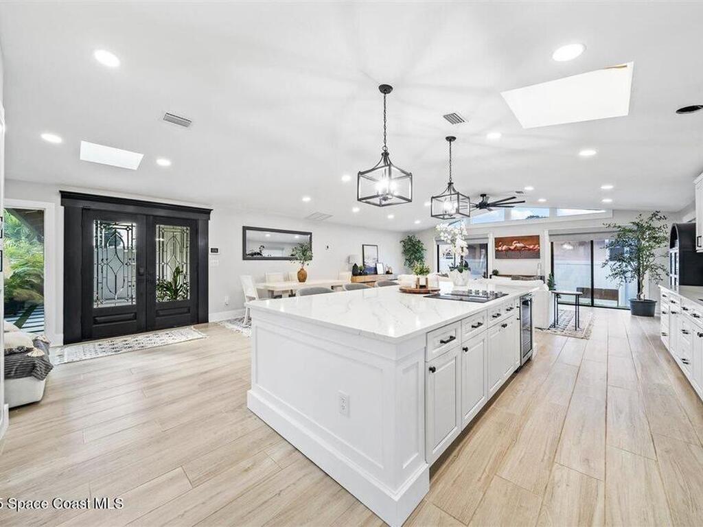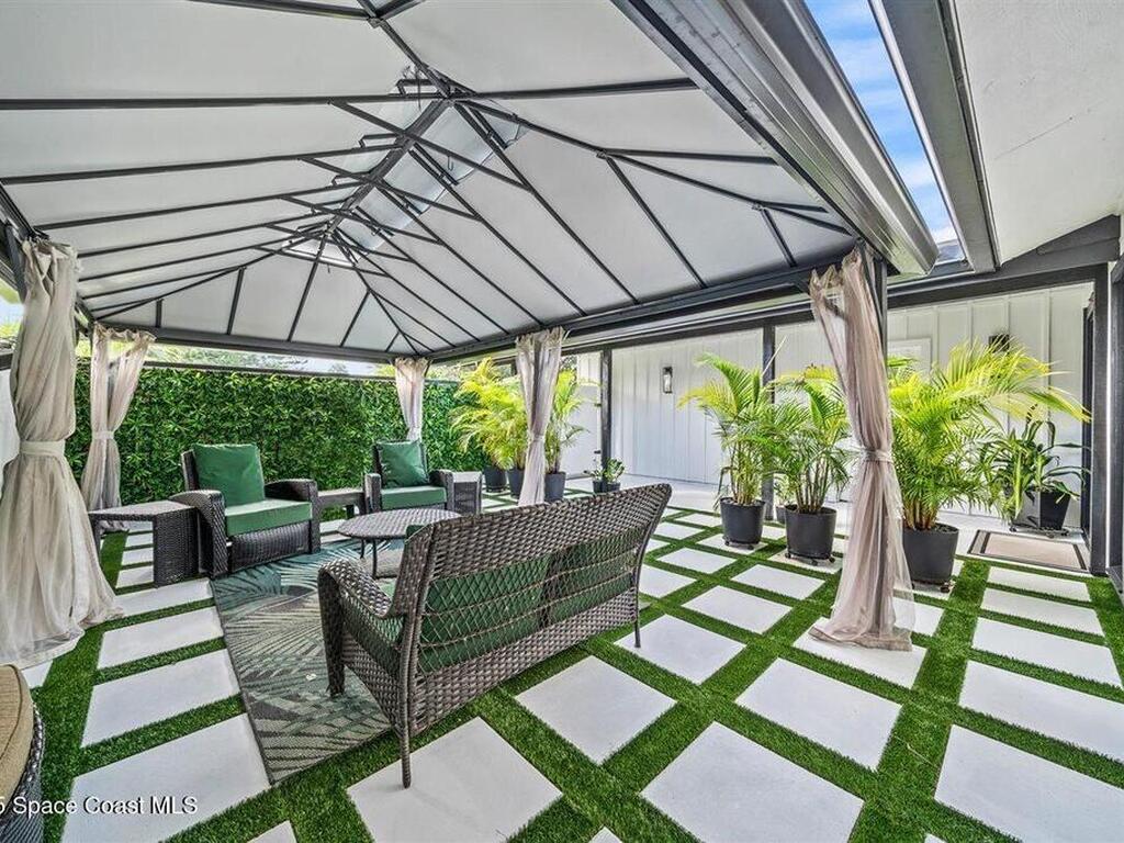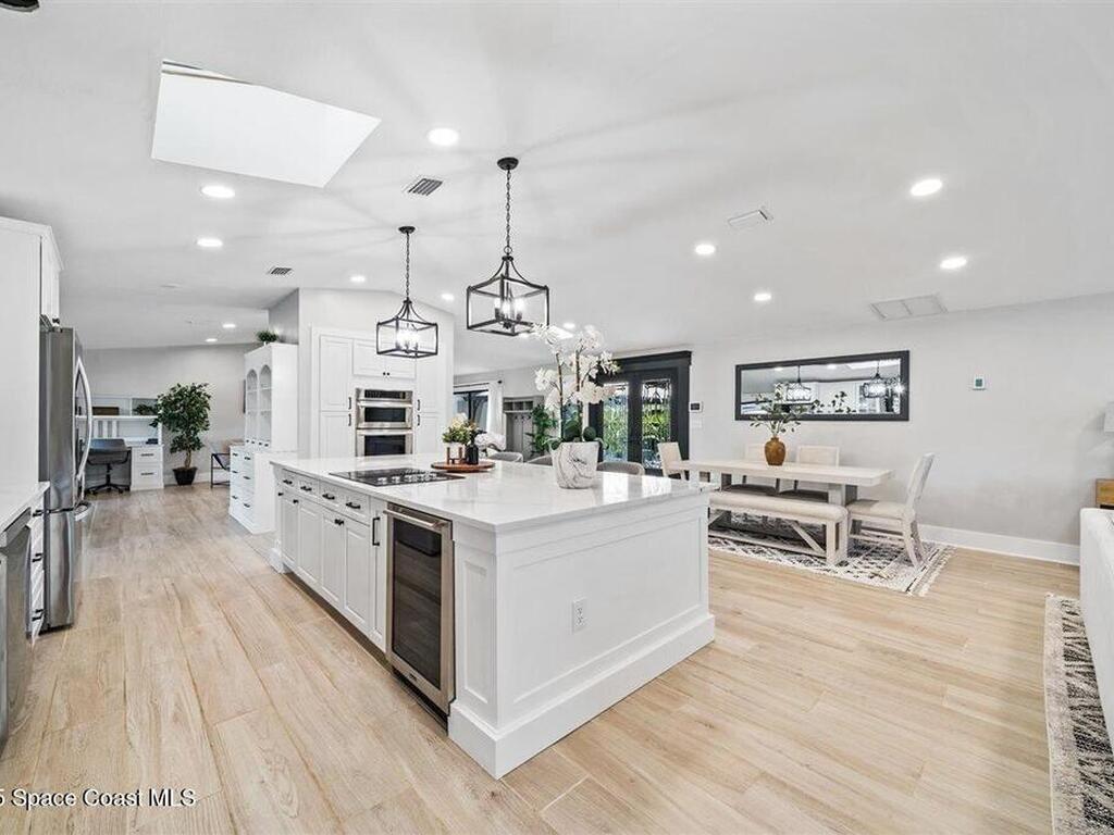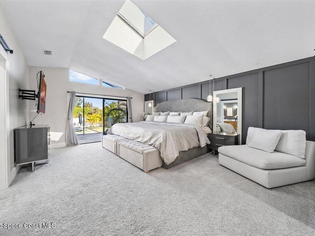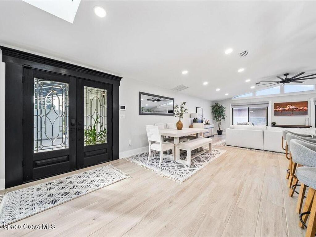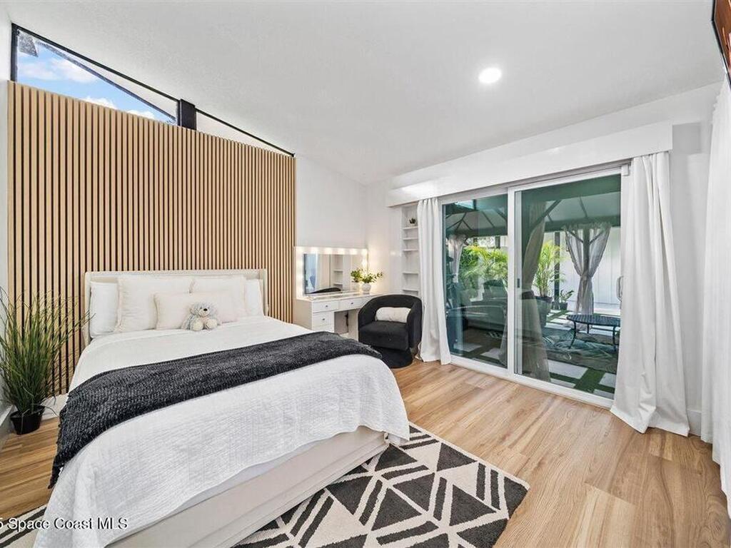 Welcome home, where thoughtful design & quiet luxury make this sanctuary unforgettable. Set on an oversized, newly re-landscaped lot, this pool retreat has been transformed with timeless upgrades--from the new roof & skylights to the handcrafted Hardie-board exterior that wraps the home in comfort & durability. The elevated deck has been rebuilt & skirted in Hardie-board for a seamless look, while the screened porch, fresh sod, & private grill deck with a dedicated gas line create outdoor spaces perfect for lingering sunsets and effortless entertaining.Inside, natural light pours through impact slider & across warm LVP floors, highlighting a mahogany front door & a reimagined fireplace wall that anchors the living space. Every corner reflects care: remote-control shades, dimmable lighting, rebuilt garage AC, added insulation, upgraded electrical, clear-water well sprinkler, built-in closet system, & a transferable termite bond. This is a home ready for its next cherished chapter.