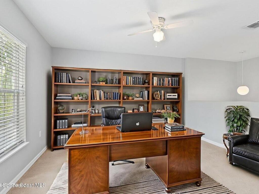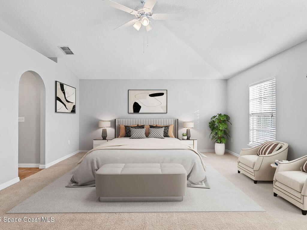 Beautifully maintained former model home in a gated community with a pool and playground. This spacious 4-bedroom, 2.5-bath sits on a peaceful lakefront lot where fencing is allowed, with plenty of room to add a pool. Inside, enjoy formal living and dining rooms, a bright family room, and a large kitchen with two pantries, abundant storage, and stainless-steel appliances. The screened lanai offers stunning water views. All bedrooms are larger than average, including a massive primary suite ( 20' X 21') with vaulted ceilings, dual walk-in closets, double sinks, a walk-in shower, and a soaking tub. An additional oversized upstairs bedroom feels like a second master suite ( 14' X 17') plus a flexible loft provides extra living space. Downstairs flex/office could be a 5th bedroom. Making multigenerational living easy. Features include a newer roof (Nov 2023) and last year's $460, 000 appraisal. Move-in ready and ideally located near I-95, shopping, restaurants, and Fred Poppe Park.