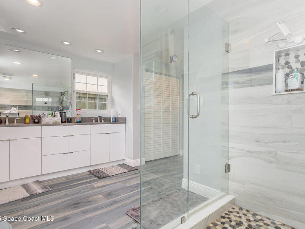 Welcome to your completely remodeled split-level pool sanctuary perfectly positioned within walking distance to vibrant downtown Melbourne. This stunning home blends modern design with effortless functionality and traditional charm, offering the ideal retreat for professionals, families, and anyone who appreciates style and convenience. Step inside to discover sun filled living spaces, a light and bright kitchen with huge quartz island, gorgeous backsplash and stainless steel appliance. The split level layout offers both openness and privacy, creating natural areas for gathering, working and unwinding. Every detail has been refreshed to feel brand new, just move in and enjoy. Your private outdoor oasis awaits. A gorgeous newly built pool becomes the centerpiece of the generous fully fenced backyard surrounded by a spacious wrap around screened in patio perfect for entertaining, lounging, or enjoying Florida breezes year-round. Prime location near Florida Tech and tech companies.