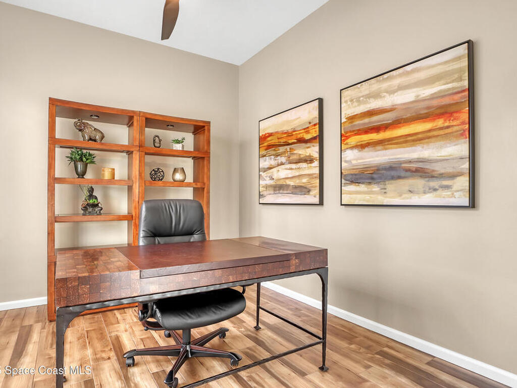 BEAUTIFULLY & THOUGHTFULLY UPDATED FULLY-FURNISHED GOLF COURSE VILLA IN THE SOUGHT-AFTER BARRIER ISLAND OCEAN-TO-RIVER AQUARINA BEACH & COUNTRY CLUB offers everything you need to LIVE YOUR BEST FLORIDA LIFE IN TRUE BEACH RESORT STYLE!! This spacious 2-story home with over $175, 000 of recent upgrades including a NEW ROOF boasts a HUGE lanai with brand new pavers & paint overlooking the tropical golf course, 3 bedrooms, 2 1/2 baths, office, bonus loft space, formal dining room, living room with fireplace, large eat-in kitchen, & main floor over-sized primary suite. Updates include new a/c, water heater, new sliders with hurricane glass, new custom front door, updated flooring, custom-built closets & window treatments, & new lanai pavers. Amenities include Beach Club with private beach access, Golf & Tennis Club with limited play included in your HOA fees, boat launch & fishing pier, on-site restaurant, fitness center, community center, & tons of social activities! Move right in!