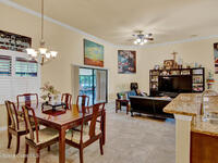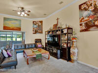 This spacious 5-bedroom, 4-bath home features a 3-car garage plus a 1, 009 sq ft enclosed patio for a total 4, 163 sq ft under air. Soaring 12' ceilings and elegant crown molding in the main living areas, plantation shutters, brand-new roof, solar panels, and an EV charging station elevate everyday comfort. The versatile office/flex room can also serve as a 6th bedroom. Enjoy serene lake views and tons of space for toys, hobbies, and gatherings. Conveniently located for quick access to I-95, shopping, dining, and the beaches.
