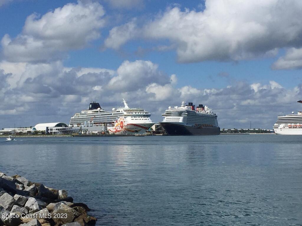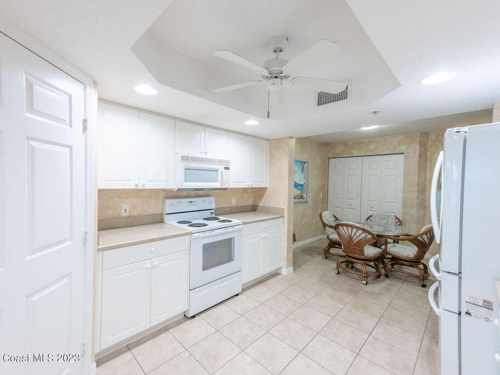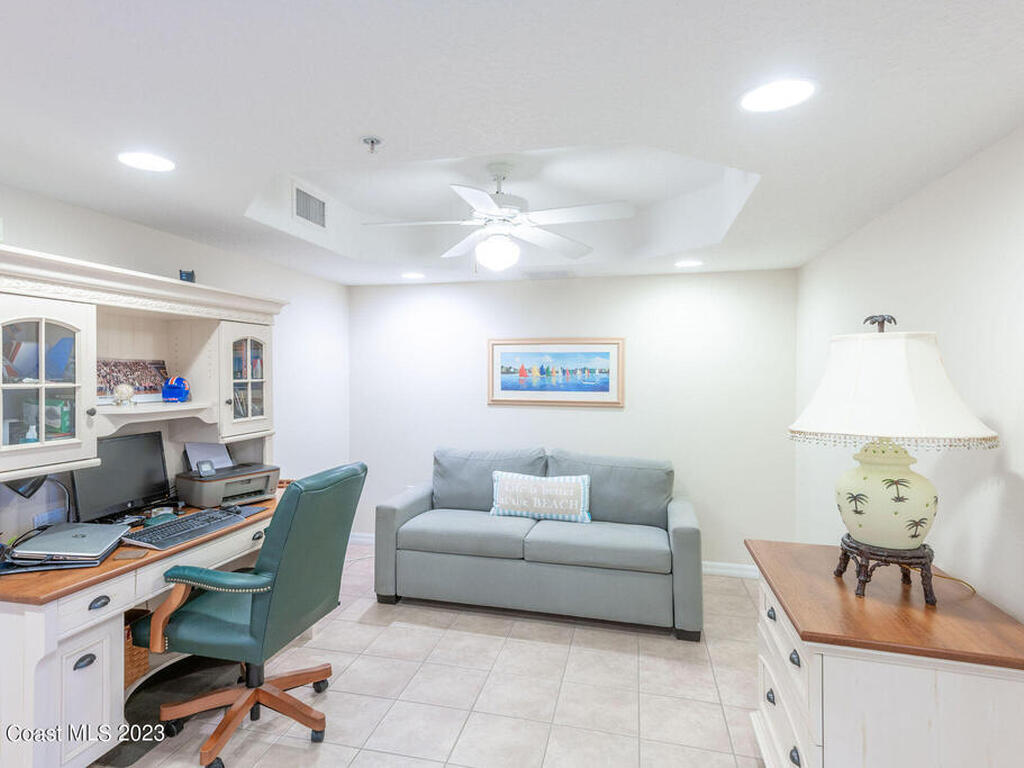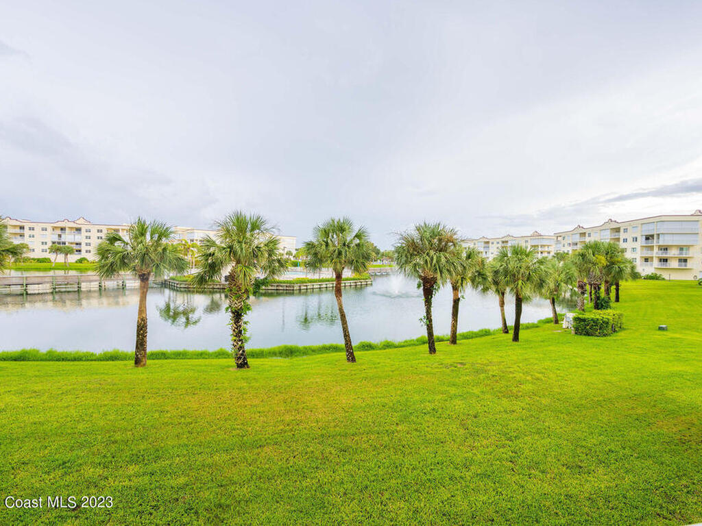 Location is just one of the great features of Solana Lake, a well-kept and solid, immensely popular gated condominium with an active lifestyle about a block from the beach. Reserves are fully-funded and roofs are brand new. This home is a larger 2bed/2bath plus a den. Large walk-in closets. Separate garden tub and shower in primary bath. New paint and high-end AC unit. Oversized PRIVATE garage so you never get wet unloading your groceries. Newer refrigerator and washer/dryer. Sit on your 140 SF balcony and enjoy a great view of cruise ships, rockets, and wildlife. Ample green space and parking. Island pool, spa, and cabana. The private crossover leads you to a quieter section of beach. Amenities include tennis courts, clubhouse with well-equipped gym, sauna, etc. Walk/bike to Jetty Park. Centrally located with easy drives to airports, KSC, malls, and shopping.