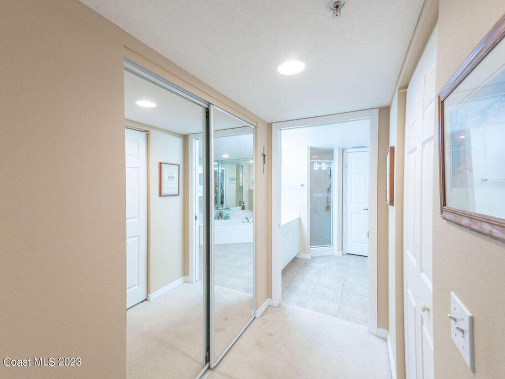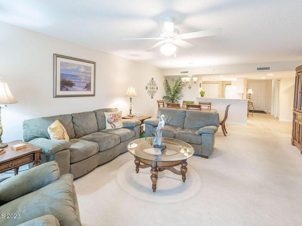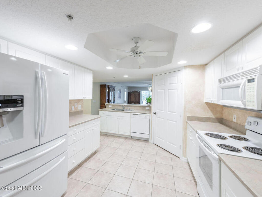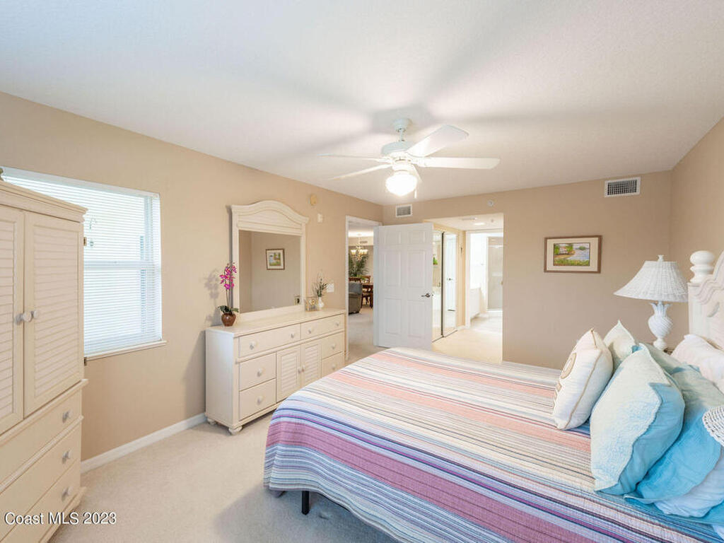 Location is just one of the great features of Solana Lake, a well-kept and solid, immensely popular gated condominium with an active lifestyle about a block from the beach. Reserves are fully-funded and roofs are brand new. This home is a larger 2bed/2bath plus a den. Large walk-in closets. Separate garden tub and shower in primary bath. New paint and high-end AC unit. Oversized PRIVATE garage so you never get wet unloading your groceries. Newer refrigerator and washer/dryer. Sit on your 140 SF balcony and enjoy a great view of cruise ships, rockets, and wildlife. Ample green space and parking. Island pool, spa, and cabana. The private crossover leads you to a quieter section of beach. Amenities include tennis courts, clubhouse with well-equipped gym, sauna, etc. Walk/bike to Jetty Park. Centrally located with easy drives to airports, KSC, malls, and shopping.