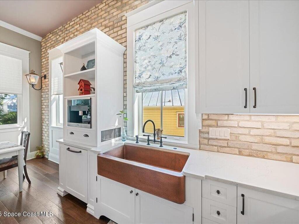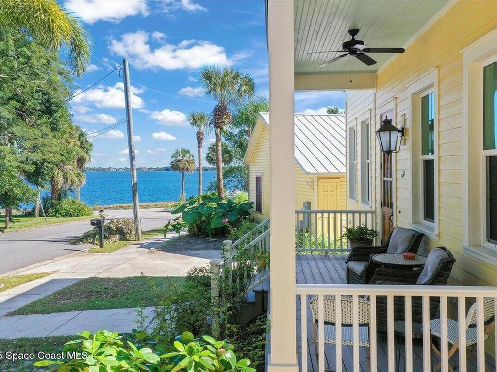 Rare opportunity to own a unique, income-producing waterfront property in Historic Cocoa Village! This Edwardian era fully furnished main house (former B&B) and furnished cottage (thriving Air BnB) sit on 133' of Indian River frontage with dock and 10, 000 lb. boat lift. A stunning 2 level 2022 built home with elevator features a gourmet kitchen with Wolf gas range, Miele coffee maker, wine bar, brick accents, hand-scraped hardwood floors, and gorgeous views. Three spacious bedrooms and baths provide modern comforts. Property also includes a 3-car garage, utility room for tenants and a 1 bedroom apt above with patio and garden planters. All furniture in three buildings conveys, along with three active leases. Walk to Cocoa Village, watch rocket launches, walk, bike and run along the Indian River. Ideal for investors or multi-generational living!