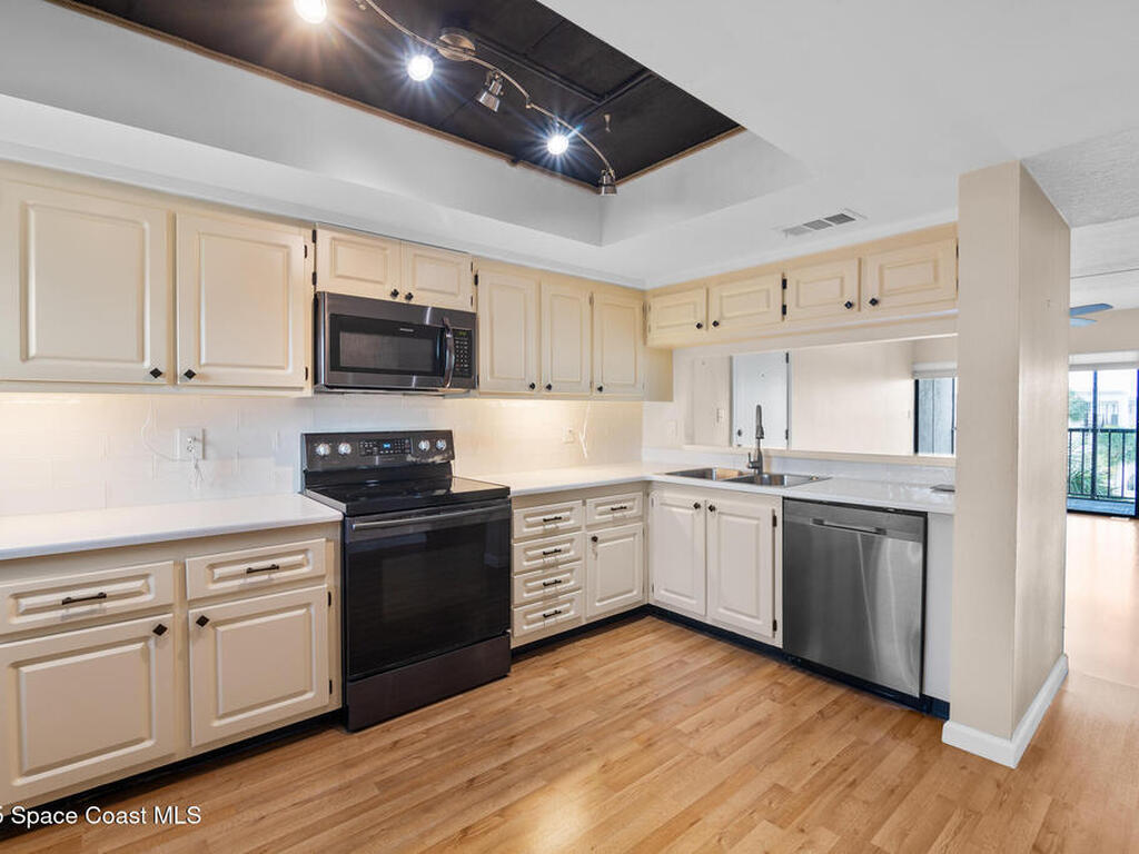 Welcome to your dream condo with stunning river views! This beautifully updated 2 bedroom, 2 bathroom unit offers an updated kitchen with stainless steel appliances, refaced cabinets, and new countertops. The laminate flooring throughout gives a sleek and contemporary feel, while the high impact/low E windows installed in 2020 provide energy efficiency and peace of mind. New impact sliding glass doors in 2025. The primary bathroom was recently updated in 2020, and a new HVAC system was installed in 2019 for added comfort. Enjoy ceiling fans, and new hot water heater installed in 2023. With a new front door and storm door installed in 2021, new roof done in 2024 and much more has been done, this condo is truly move-in ready. The condo has a beautiful community pool and has Pickleball/Tennis Courts for your leisure. Close to all shopping and dinning. Don't miss out on this opportunity to live in luxury by the river!