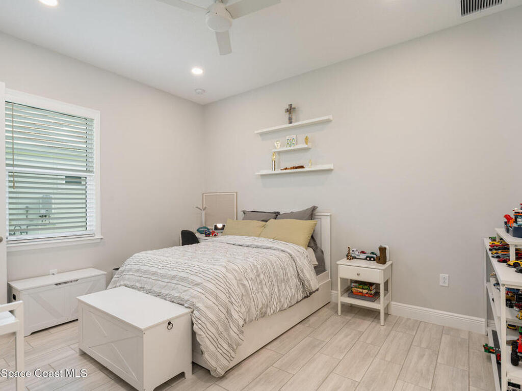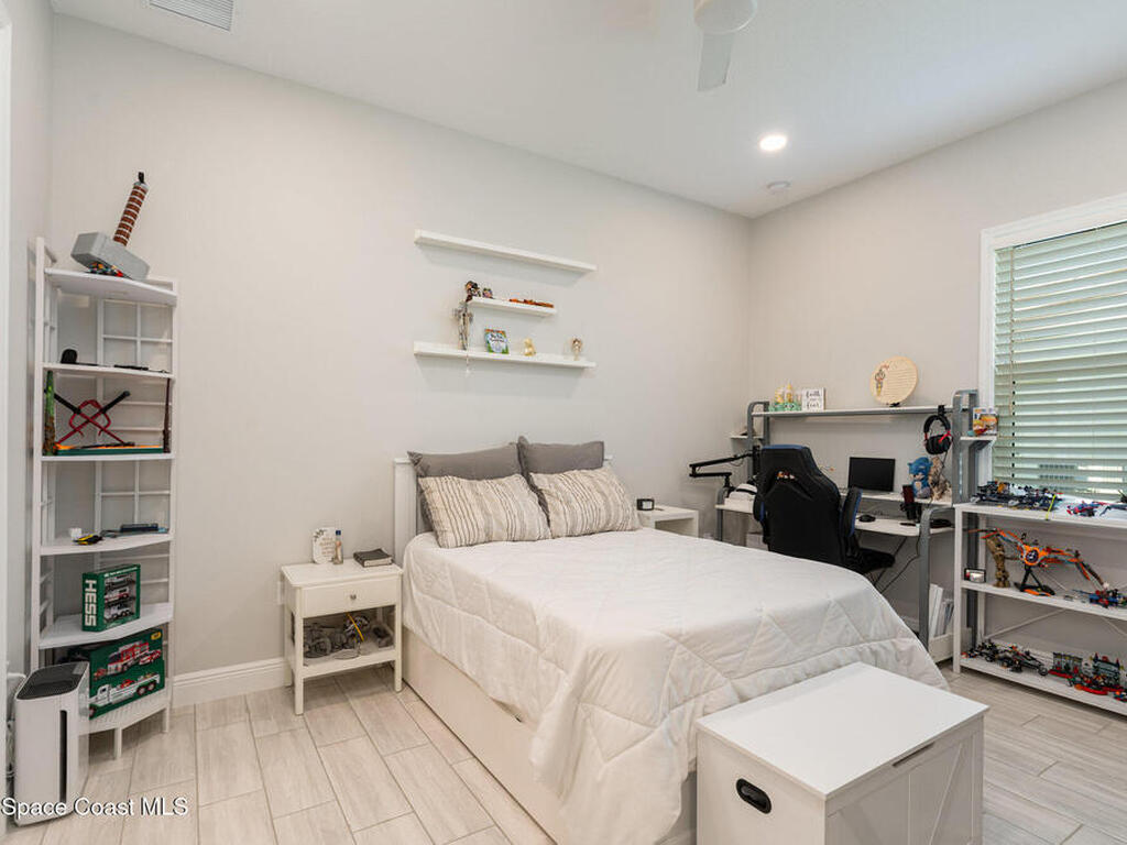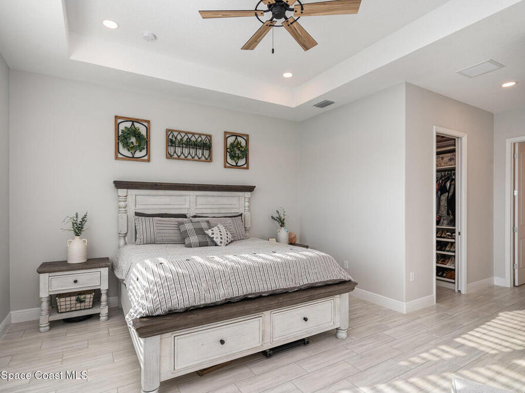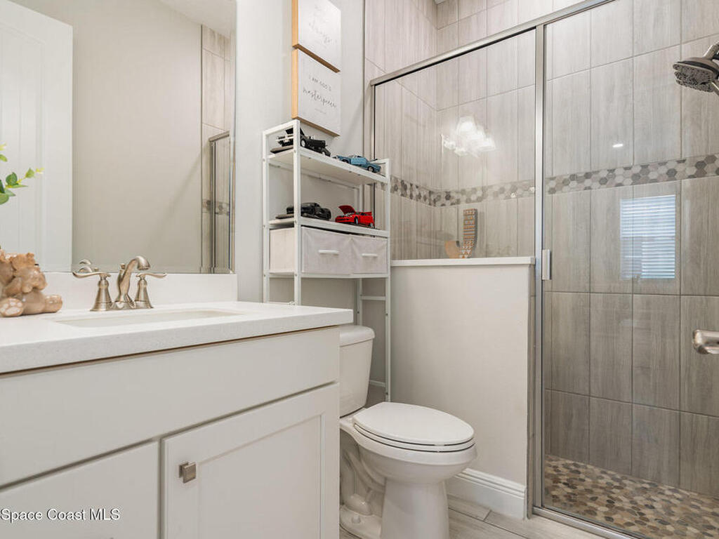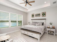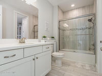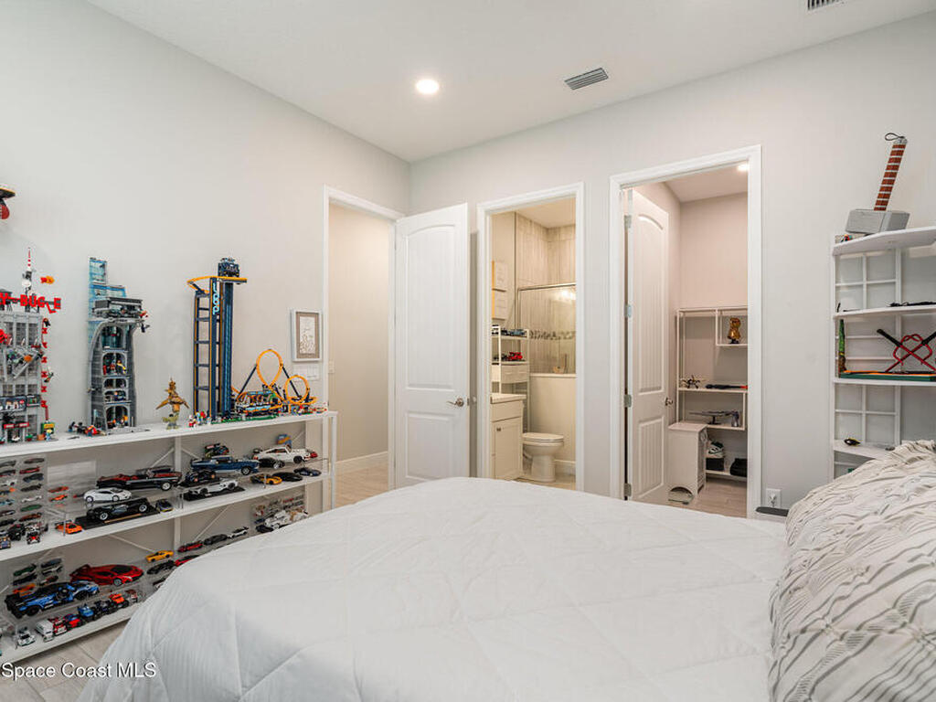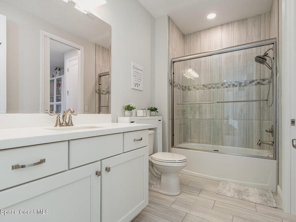 Nearly new 2024-built home in Viera's exclusive Laurasia! This spacious 4-bedroom, 4.5-bath residence offers 3, 690 sq ft of bright, open-concept living with soaring ceilings and effortless flow for everyday comfort or entertaining. The Gourmet Kitchen package dazzles with Level 4 cabinets, upgraded countertops, and a microwave drawer. Premium Level 3 flooring runs throughout, with matching tile upstairs. Unwind by a 6-ft electric fireplace set on a custom stone wall. Impact windows, a cell-phone booster, and abundant LED high-hat lighting on both floors elevate daily living. The primary suite adds a relaxing soaking tub and premium shower. A private study, laundry cabinets, and extra garage direct-line outlets add function. Outside, enjoy a premium lot with extra lanai outlets plus water and gas stubs, pool-service prep, and space to build your dream backyard oasis. Minutes to schools, parks, The Avenue Viera, beaches, I-95, and Space Coast employers--move-in ready. A MUST SEE!