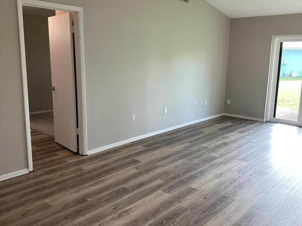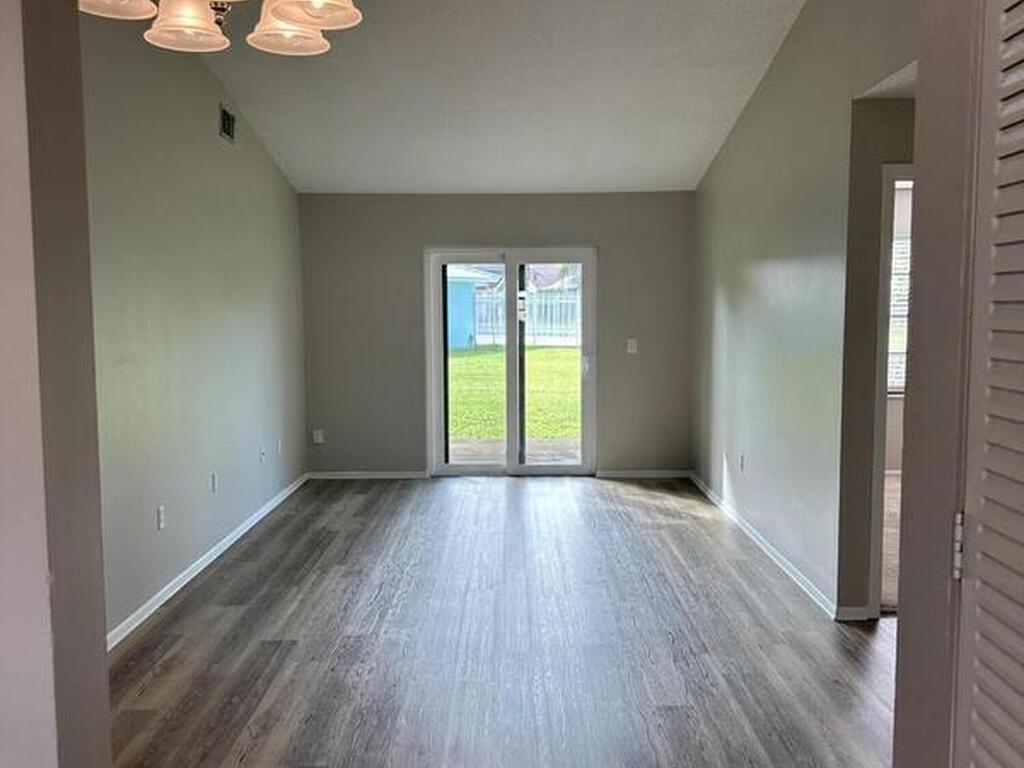 Come make yourself at home in this cozy duplex featuring two master suites. This open-concept floor plan is perfect for entertaining family and friends. The back porch offers a view of the pool and is equipped with hurricane shutters and an impact-resistant sliding door for your peace of mind.Enjoy the perfect location with just a short drive over the bridge to the beach, plus close proximity to excellent shopping and dining options. The property has been freshly painted inside and out, move-in ready for you!