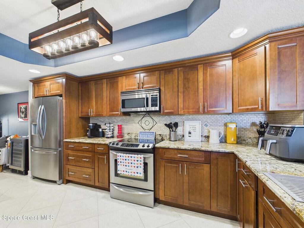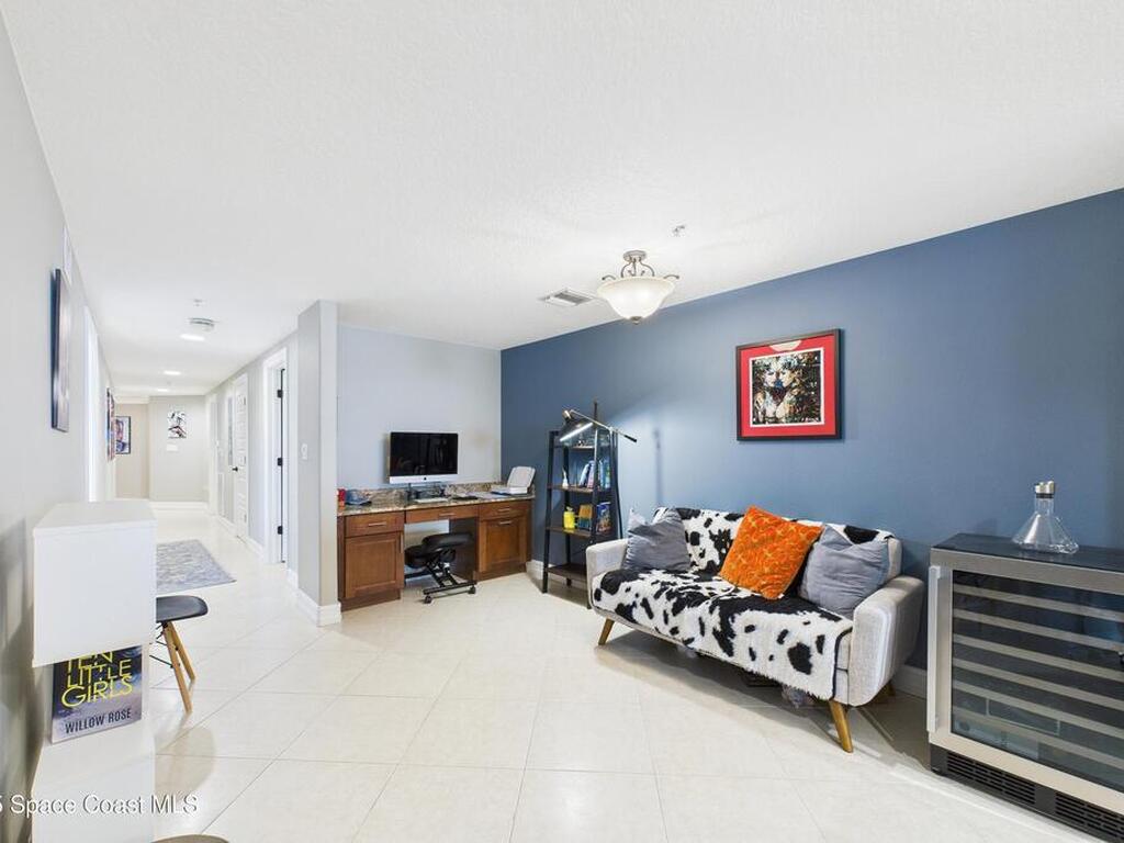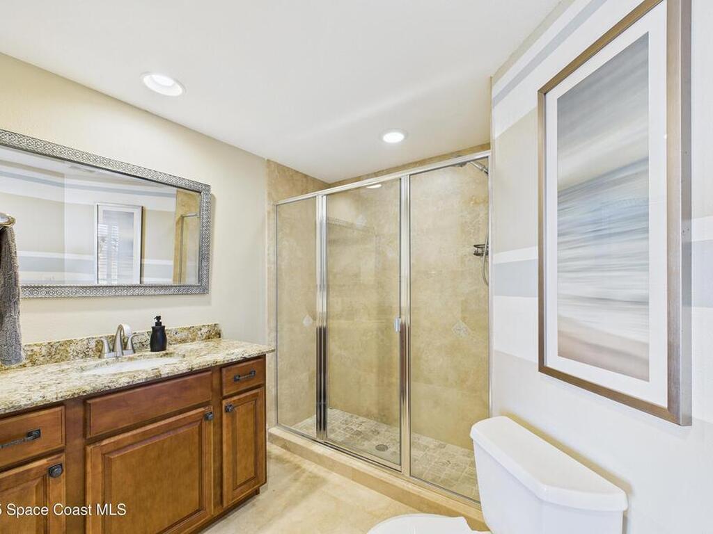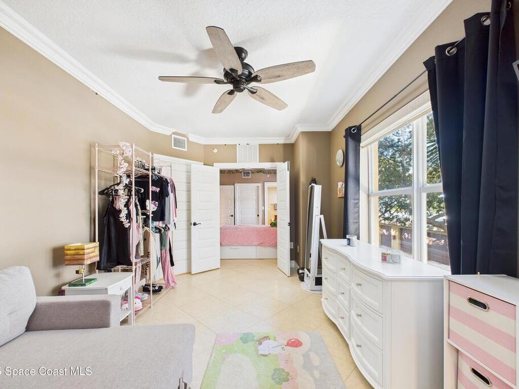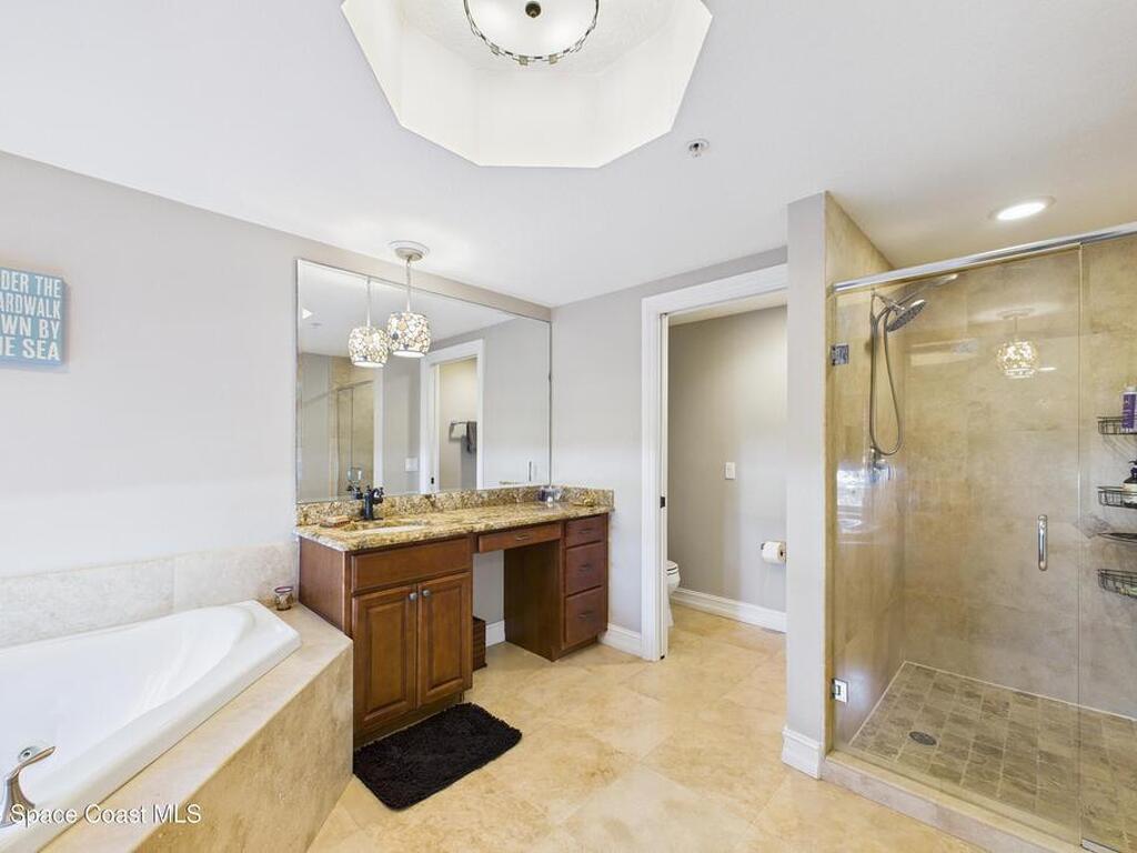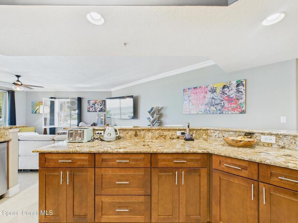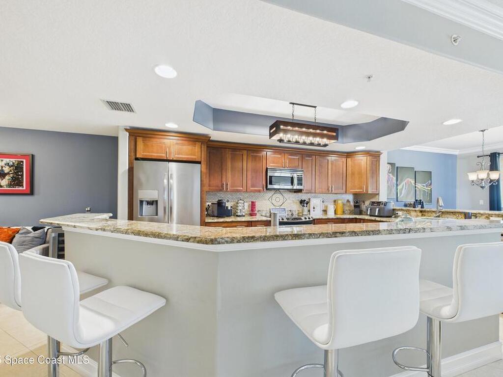 Spectacular DIRECT BANANA RIVERFRONT CORNER UNIT offering breathtaking views and a peaceful waterfront lifestyle in the boutique 11-unit community of Garden Bay. Rare opportunity to own an end unit in this highly desirable Cocoa Beach complex--just a short stroll to the ocean, restaurants, and shopping. Nearly 2, 600 sq ft of luxury living with 4 bedrooms, 3.5 baths, and a private 2-car garage. High 8.5' ceilings, crown molding, travertine and wood flooring (no carpet), and impact windows with plantation shutters throughout. The gourmet kitchen boasts granite countertops, custom cabinetry, tile backsplash, and newer stainless appliances overlooking the water. Spacious owner's suite features double walk-in closets, private balcony, and spa-inspired bath with jetted tub and marble shower. Each guest bedroom has its own ensuite bath for privacy and comfort.