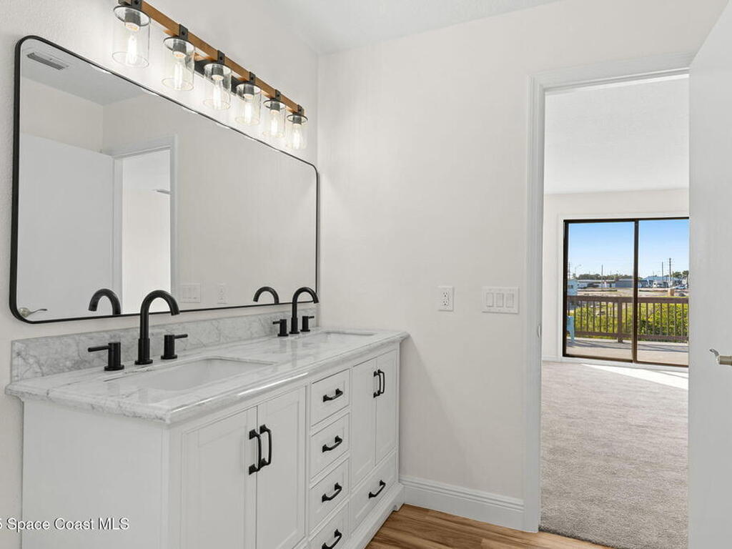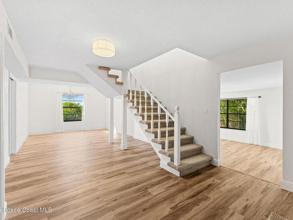 Waterfront home - with a BASEMENT! Located in Ballard Park, this 5 bedroom, 3 bath Melbourne home gives you 100 feet of canal frontage and direct access to the Indian River Lagoon from your backyard. Inside, an updated layout features a clean modern kitchen, refreshed baths, vinyl flooring throughout the main level, and a step-down sunken living room that pulls your eye to the water. Three upstairs bedrooms open to a shared balcony that runs along the canal, while a finished bump-out lower level creates a true bonus room for media, gym, studio, or play - a rare find in this area of Florida. An oversized two-car garage, no HOA, and low-maintenance finishes keep daily life easy. No bridge height restrictions and future dock potential invites you to bring the big boats and kayaks. From here it's a short walk to Ballard Park's boat ramp, tennis courts, and riverfront green space, and just minutes to Downtown Eau Gallie, Historic Downtown Melbourne, shopping, dining, and the beaches.