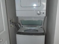 Dishwasher, Electric Range, Refrigerator, Washer/Dryer Stacked
