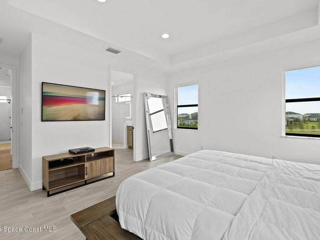 Welcome to your dream rental home in Viera! This house offers 4 Bedrooms PLUS Loft, 3.5 bathrooms and a 2-car garage, with ample driveway space to fit a total of ten cars. Equipped with SOLAR PANELS, the electric bills range from $30 to MAX $100 a month. That is an Insane SAVINGS!!!... The monthly rent also includes LAWN CARE...Step inside and experience the modern beauty of an open floor plan. The kitchen is a chef's dream, equipped with every modern feature you could desire. Its centerpiece is a large eat-in island, perfect for casual dining or entertaining guests. This space seamlessly combines style and functionality, making it the ideal hub for culinary creativity and social gatherings...The generously sized master bedroom comes complete with a sizable walk-in closet. The master bathroom exudes sophistication with double vanities, large shower, LED bathroom mirrors, and lots of storage.Enjoy the serene and DOUBLE LAKEVIEWS and spectacular sunsets, from the extended