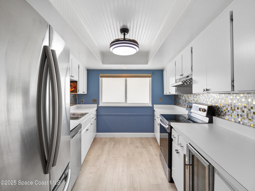 This home can be purchased with no income verification! Experience oceanfront living at an incredible value in the heart of Cocoa Beach--where every day feels like a vacation. With no assessments and a 1-month rental minimum, this property offers the perfect blend of investment potential and carefree coastal living. The distinctive semi-circle architecture wraps around a resort-style pool, creating a vibrant yet serene atmosphere. Step through the grand double wood doors into a freshly painted, beautifully updated space featuring luxury vinyl plank flooring and a sleek modern kitchen with 2020 stainless appliances, a built-in wine fridge, and generous entertaining space. Enjoy breathtaking ocean views from your expansive 600-sq-ft wraparound balcony with private storage. Fully furnished with in-unit laundry and extra storage--this is beachfront elegance made easy, just minutes from Kennedy Space Center, Ron Jon Surf Shop, and Downtown Cocoa Beach's new food hall.