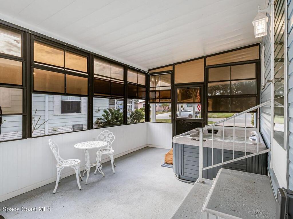 Assumable 3.1% interest loan, VA to VA only! This updated and furnished 2-bedroom, 2-bathroom home features an inviting open floor plan and a spacious kitchen with stainless steel appliances. Renovated in 2017 with all new windows, roof, and A/C, the home offers peace of mind and modern comfort. Large closets and an in-unit washer and dryer add everyday convenience.Step outside to your private screened-in patio complete with a relaxing jacuzzi tub -- perfect for unwinding. The property also includes a large storage area that can double as a workshop, plus a peaceful paved patio area at the backyard with room for a dog to run.Move-in ready and thoughtfully upgraded, this home blends comfort, functionality, and exceptional value.