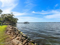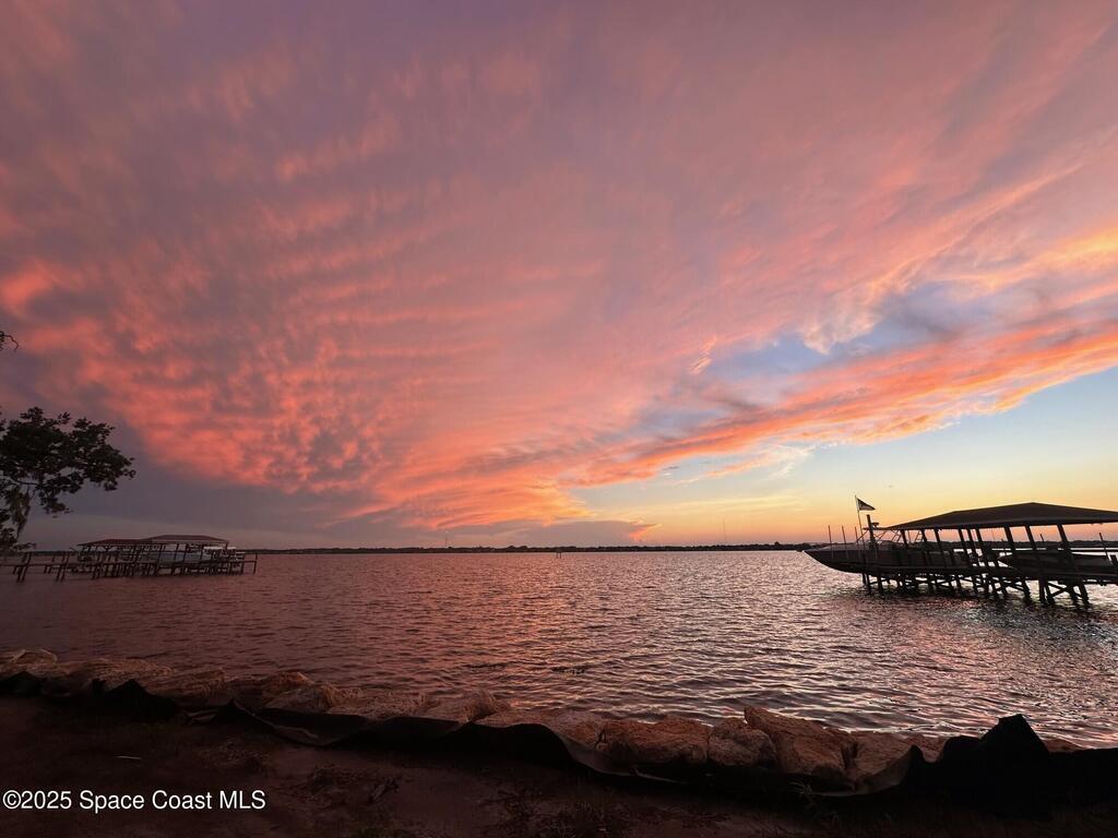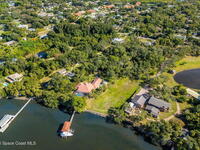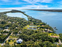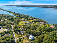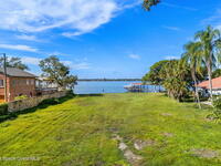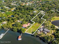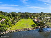 Amazing, Riverfront estate property in highly desirable, quiet Merritt Island neighborhood. Wind your way through beautiful Live Oaks to the already cleared area ready for your brand new custom home! No mangroves to obstruct your view, just open water, nature and dramatic sky shows daily. Permit already approved for a private boat dock and plans available for a magnificent 6, 500 sq ft home. A new coquina seawall from 2024 and power run to the rear of the property have you two steps closer to being ready to enjoy this very special Riverfront estate property.