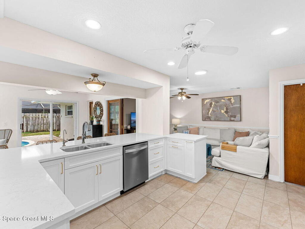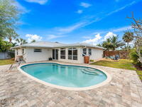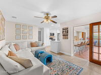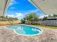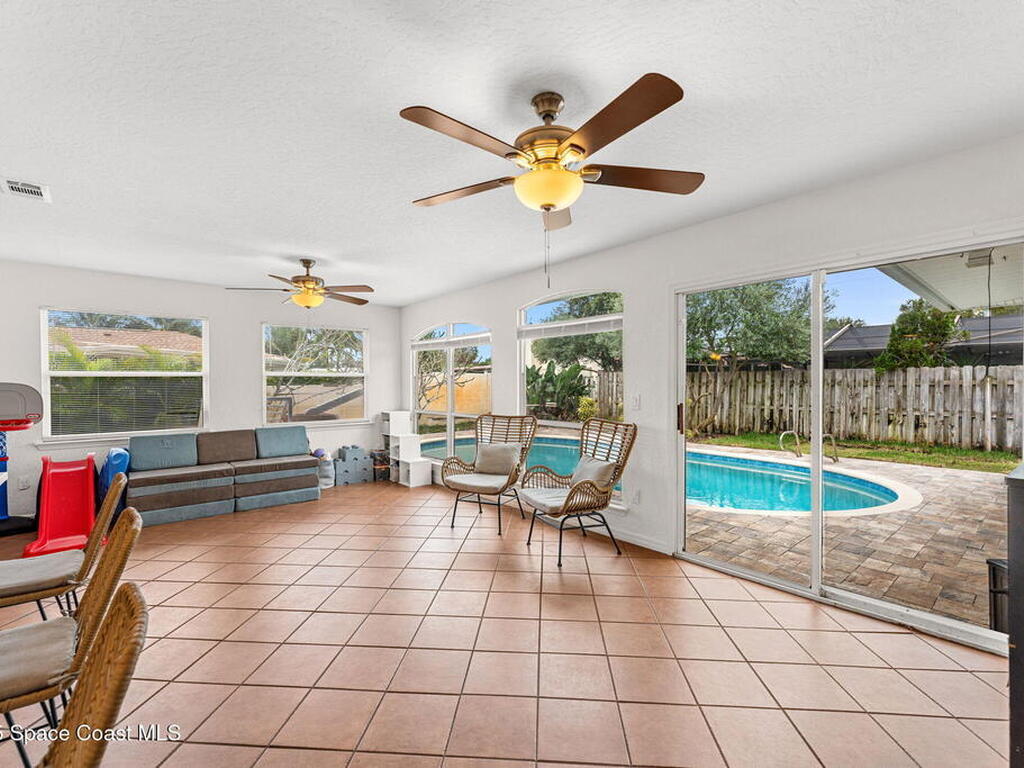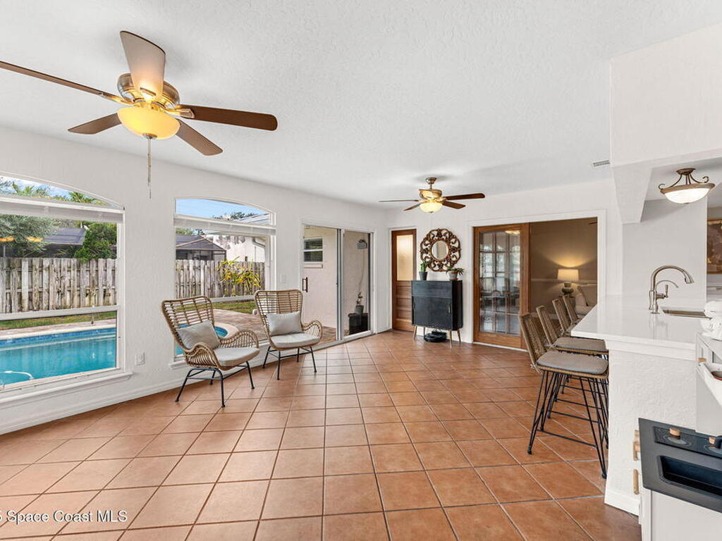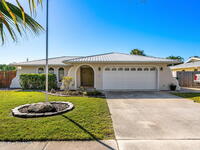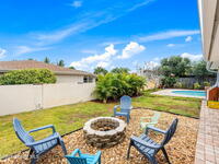 Just a short walk from parks, athletic fields, and the beach, this Amherst Gardens home delivers effortless coastal living with a private saltwater pool and a bright, functional layout. Tile flooring runs throughout the main living areas of this 3-bed, 2-bath interior, where arched windows, natural light, and an easy flow connect the foyer, family room, dining space, and updated kitchen. The living room and oversized flex room offer multiple gathering zones with wide views of the pool and backyard. Outside, a resurfaced saltwater pool (2020) and expansive paver patio create a private outdoor retreat, complete with tropical landscaping and a separate fire pit area. Additional upgrades include a 2019 electrical panel, 2021 A/C + compressor, 2022 air ducts, 2022 water heater, a newer metal roof with 2023 flat roof resurfacing, new PVC irrigation well, and RV hookup. No HOA. A-rated schools.