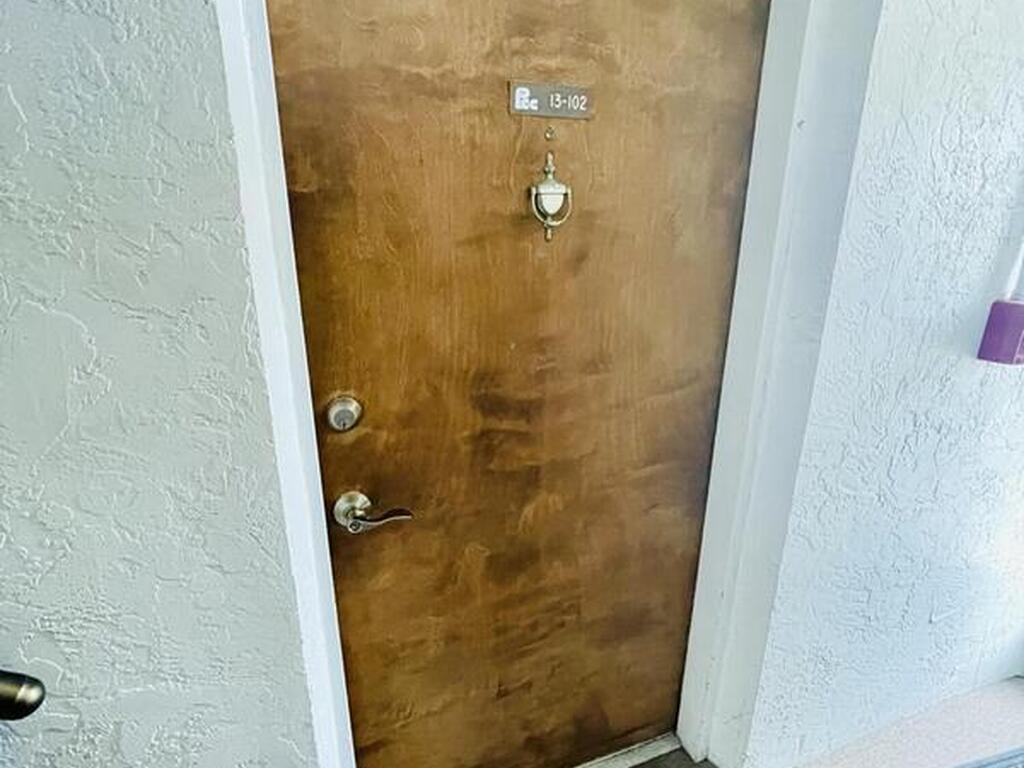 Turnkey, Beautifully updated downstairs, single-level unit featuring a remodeled interior with stainless-steel kitchen appliances, impact-resistant windows, a heavy new to-code slider, and matching flooring and tile in wet areas. A small front porch offers added privacy thanks to the mature hedge.Conveniently located across from the beach and directly opposite clubhouse, tennis courts, and community pool. A well-maintained complex with on-site property management during business hours.HOA Information: Motorcycles and pickup trucks not permitted (SUVs allowed) HOA dues pay for exterior maintenance of the building, grounds, community buildings, roads, water, sewer, trash and cable. Buyer must complete and pass HOA interview. Application has a charge. Small pets allowed (restrictions apply)Property is being sold as is, where is. Inspections welcome. Vibrant community with excellent amenities.