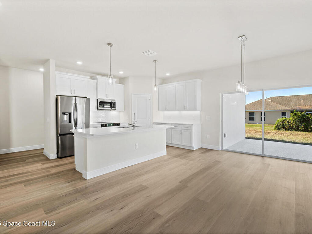 Ask us about our incentives, builder paid closing costs, & no down payment options when financing through the builder's preferred lender. This stunning new construction home exemplifies exceptional craftsmanship with soaring ceilings, a spacious open-concept great room, and a chef-inspired kitchen featuring all-wood shaker cabinets with crown molding, dovetail soft-close drawers and doors, quartz countertops, and a premium Samsung stainless-steel appliance package. Natural light fills the home through large windows and sliders leading to the covered lanai, complemented by luxury vinyl flooring throughout, tile in wet areas (no carpet!), and bathrooms with quartz-top vanities and fully tiled showers--no inserts. If you're searching for superior quality, thoughtful design, and unbeatable value, this is the home for you!