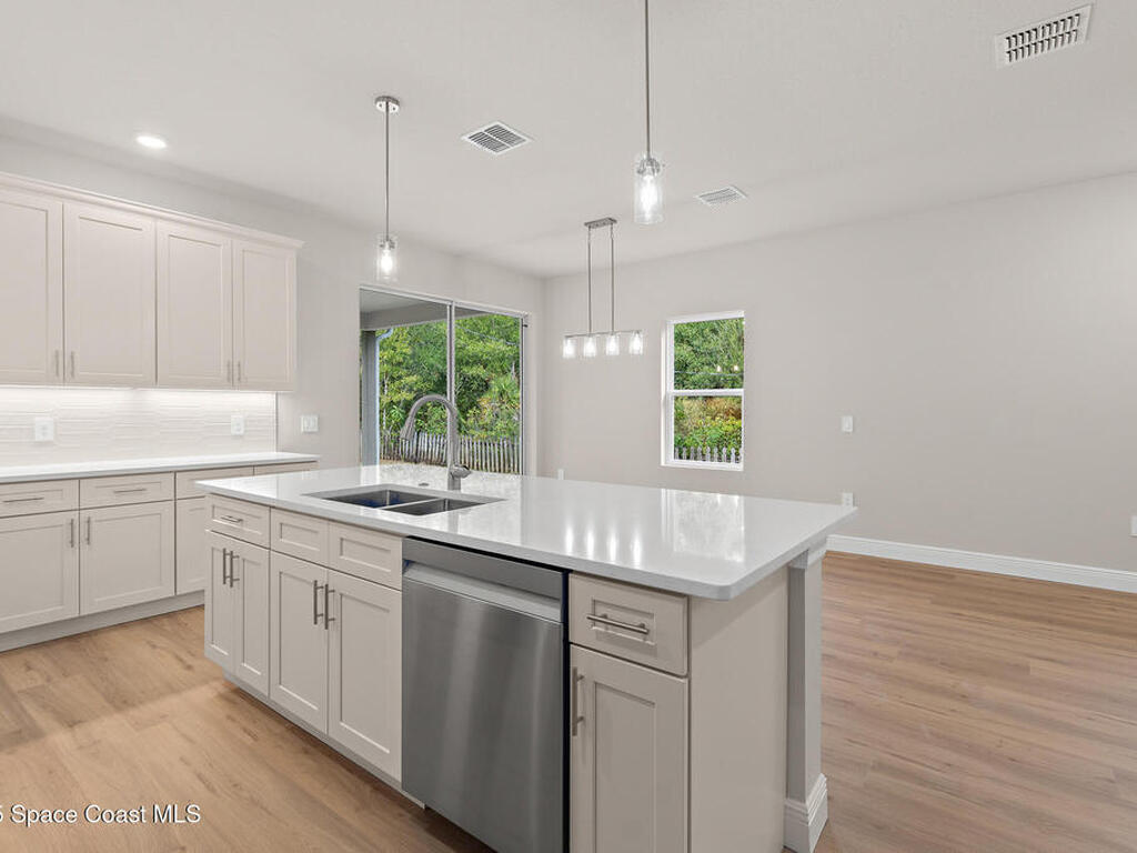 Ask us about our incentives, builder paid closing costs, & no down payment options when financing through the builder's preferred lender. This stunning new construction home exemplifies exceptional craftsmanship with soaring ceilings, a spacious open-concept great room, and a chef-inspired kitchen featuring all-wood shaker cabinets with crown molding, dovetail soft-close drawers and doors, quartz countertops, and a premium Samsung stainless-steel appliance package. Natural light fills the home through large windows and sliders leading to the covered lanai, complemented by luxury vinyl flooring throughout, tile in wet areas (no carpet!), and bathrooms with quartz-top vanities and fully tiled showers--no inserts. If you're searching for superior quality, thoughtful design, and unbeatable value, this is the home for you!