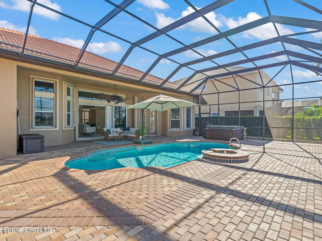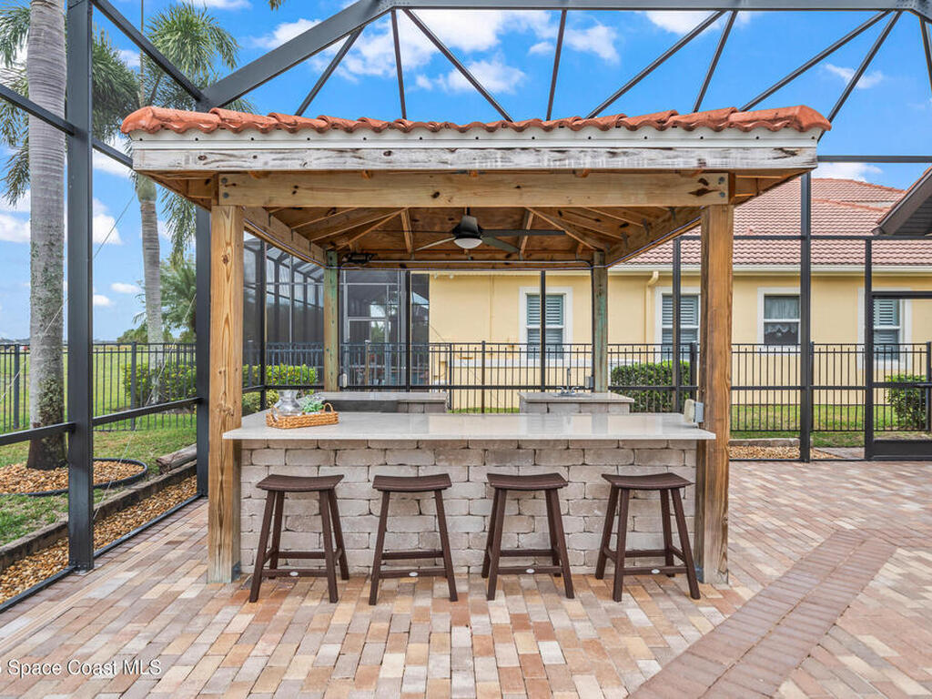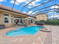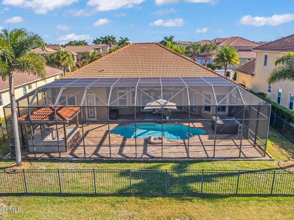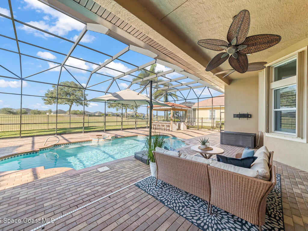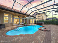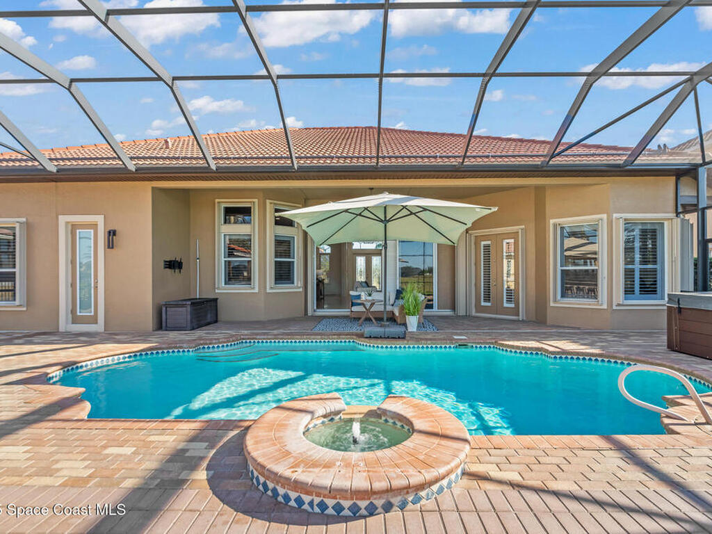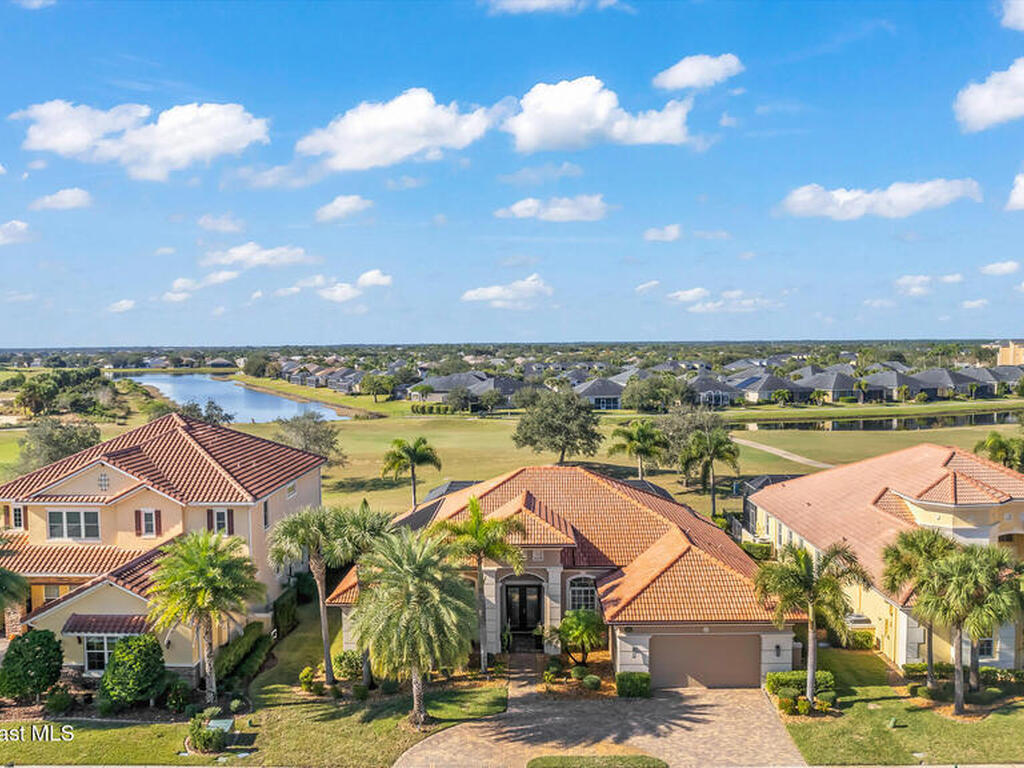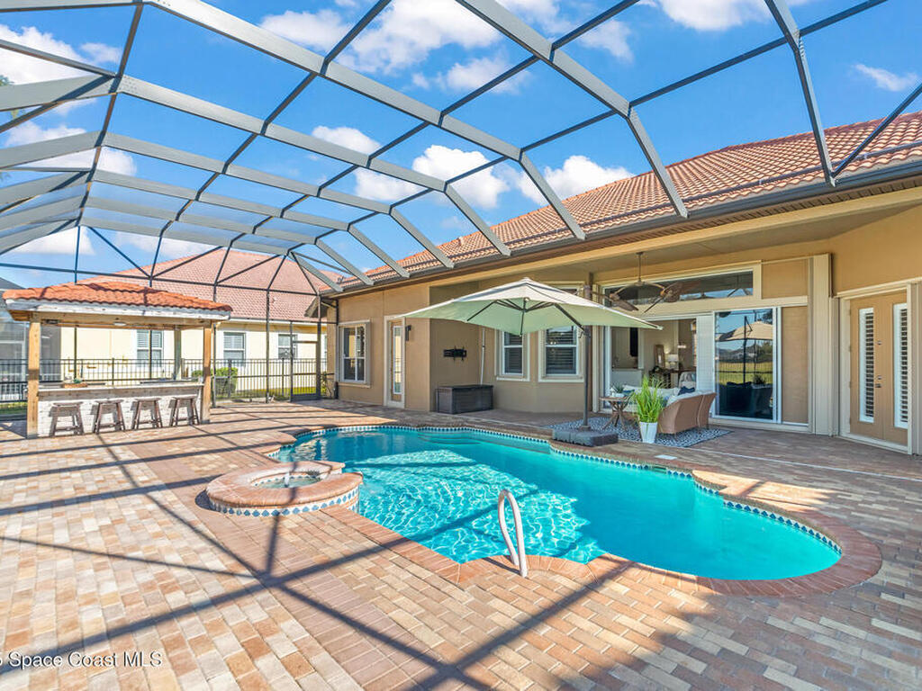 A rare find with the Duran Golf lifestyle is a perfectly positioned home overlooking the 8th hole! This Fairway Lakes beauty is truly above PAR! Inside, the home features 3 bedrooms and 3 full bathrooms, including a spacious primary suite and an additional en-suite bedroom. A versatile flex/office space with a Murphy bed offers the ideal setup for guests or work-from-home convenience. The expansive screened outdoor area is made for Florida living, complete with a solar-heated pool, outdoor kitchen, and stunning golf course views. Additional highlights include a tile roof, circular driveway and an American Home Shield warranty already in place for the new owners. Golf cart to the Duran Golf Club or to the Viera Avenue for dining and endless entertainment!This home is in the cul-de-sac which is perfect for overflow parking or easy access to the golf course!Close to hwy 95, 25 minutes to the beach or Port Canaveral, 45 minutes to Orlando. This home is a rare gem!