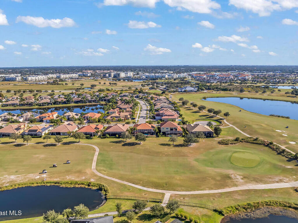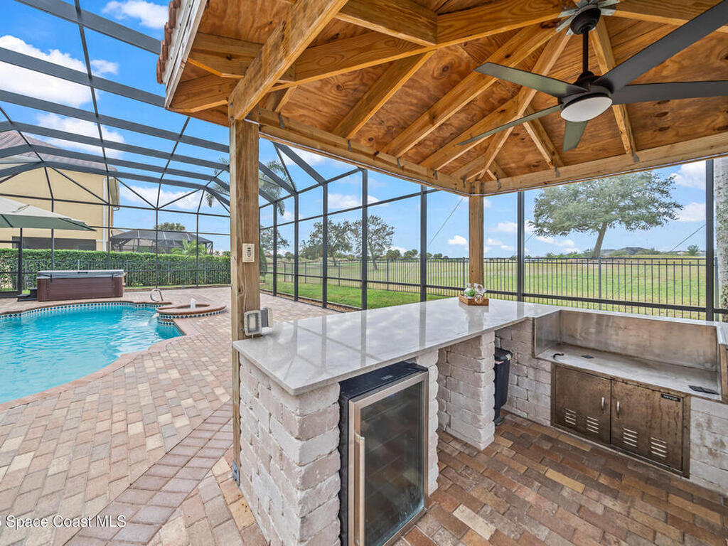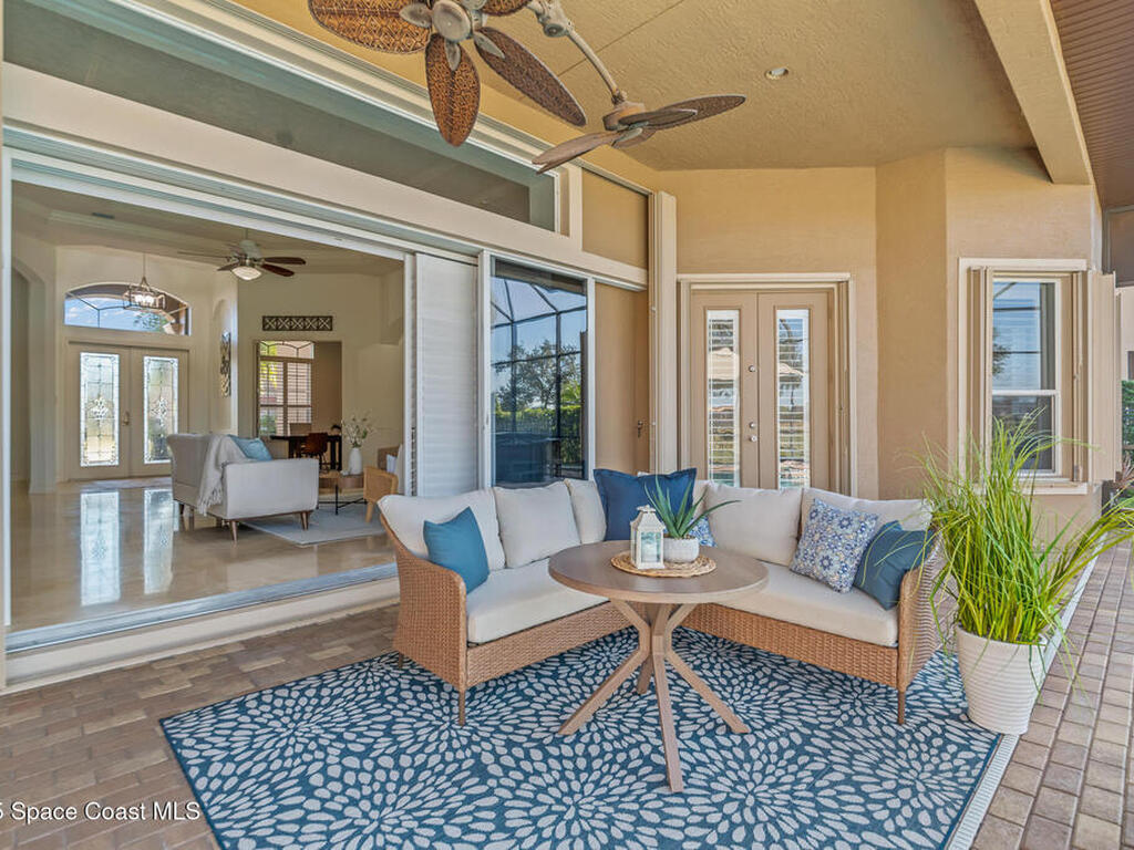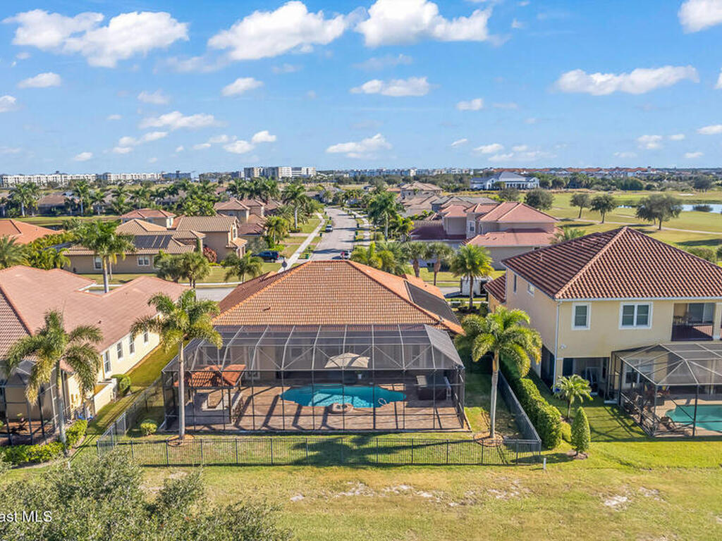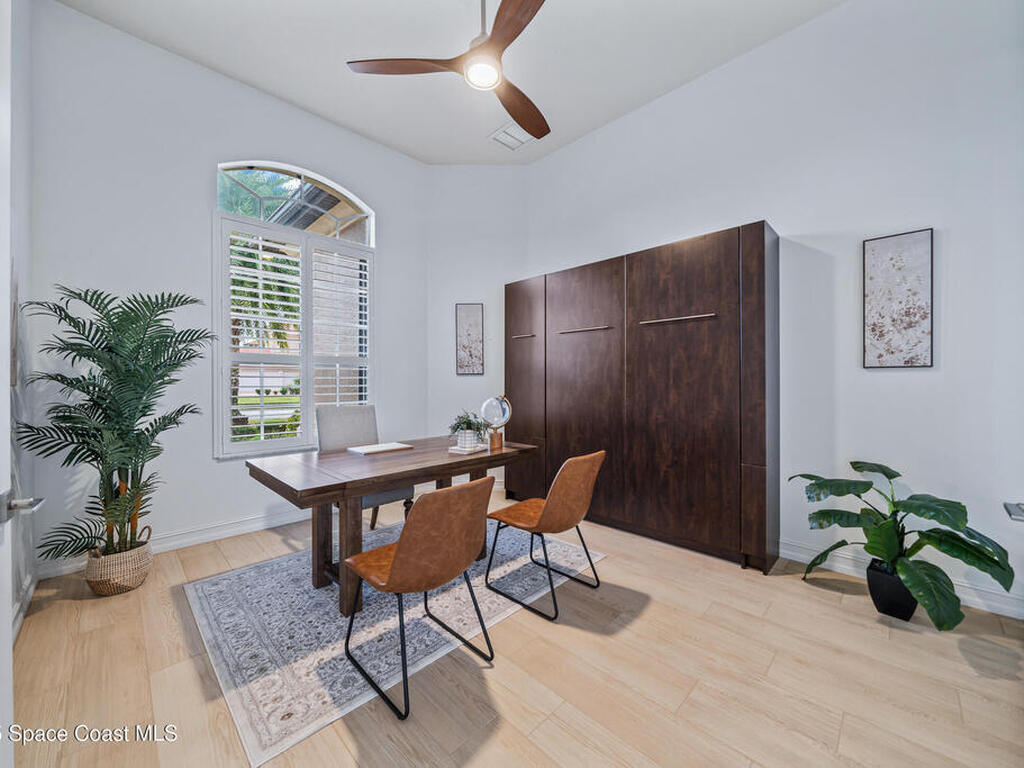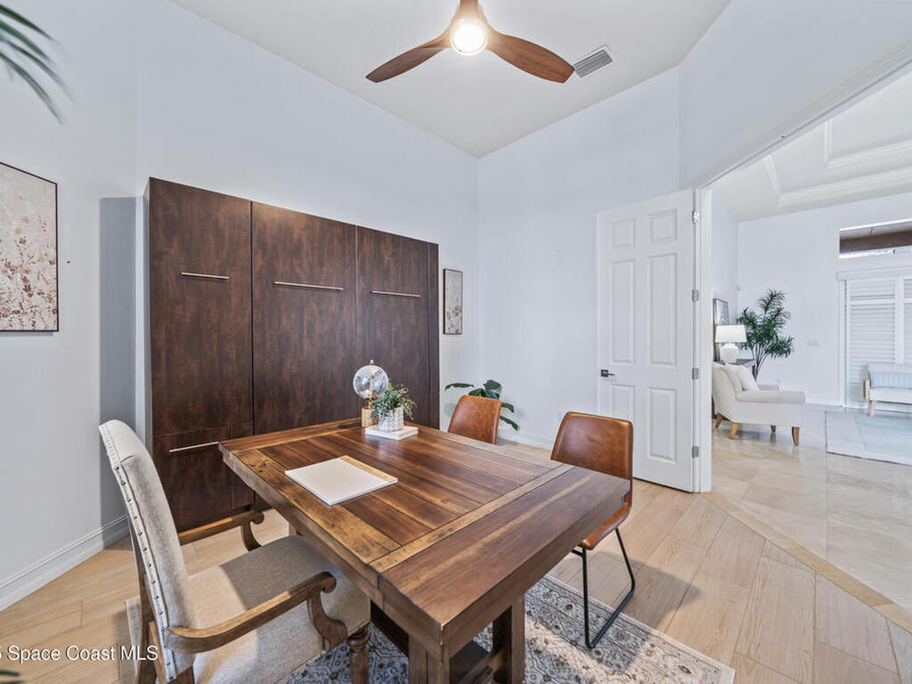 A rare find with the Duran Golf lifestyle is a perfectly positioned home overlooking the 8th hole! This Fairway Lakes beauty is truly above PAR! Inside, the home features 3 bedrooms and 3 full bathrooms, including a spacious primary suite and an additional en-suite bedroom. A versatile flex/office space with a Murphy bed offers the ideal setup for guests or work-from-home convenience. The expansive screened outdoor area is made for Florida living, complete with a solar-heated pool, outdoor kitchen, and stunning golf course views. Additional highlights include a tile roof, circular driveway and an American Home Shield warranty already in place for the new owners. Golf cart to the Duran Golf Club or to the Viera Avenue for dining and endless entertainment!This home is in the cul-de-sac which is perfect for overflow parking or easy access to the golf course!Close to hwy 95, 25 minutes to the beach or Port Canaveral, 45 minutes to Orlando. This home is a rare gem!