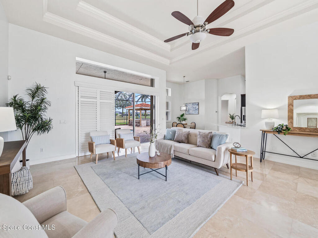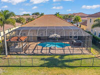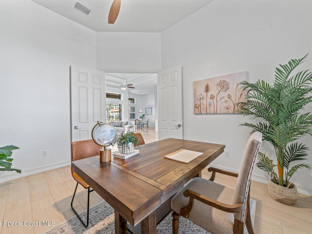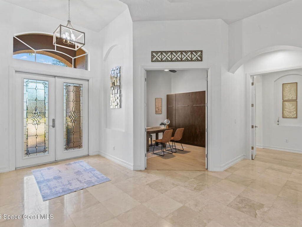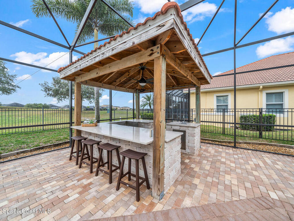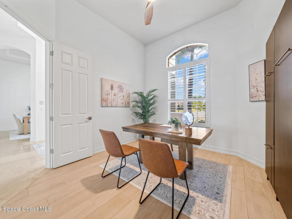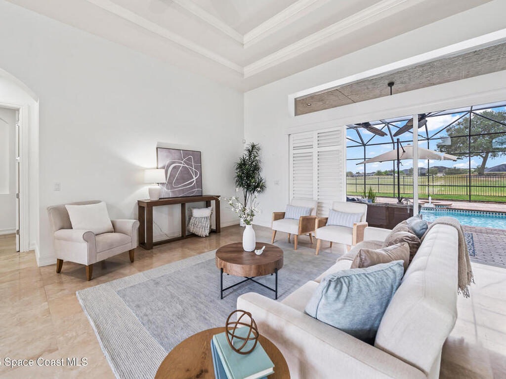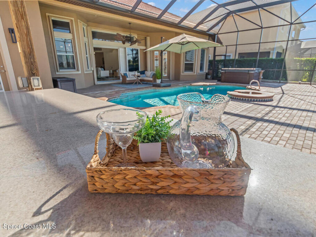 A rare find with the Duran Golf lifestyle is a perfectly positioned home overlooking the 8th hole! This Fairway Lakes beauty is truly above PAR! Inside, the home features 3 bedrooms and 3 full bathrooms, including a spacious primary suite and an additional en-suite bedroom. A versatile flex/office space with a Murphy bed offers the ideal setup for guests or work-from-home convenience. The expansive screened outdoor area is made for Florida living, complete with a solar-heated pool, outdoor kitchen, and stunning golf course views. Additional highlights include a tile roof, circular driveway and an American Home Shield warranty already in place for the new owners. Golf cart to the Duran Golf Club or to the Viera Avenue for dining and endless entertainment!This home is in the cul-de-sac which is perfect for overflow parking or easy access to the golf course!Close to hwy 95, 25 minutes to the beach or Port Canaveral, 45 minutes to Orlando. This home is a rare gem!