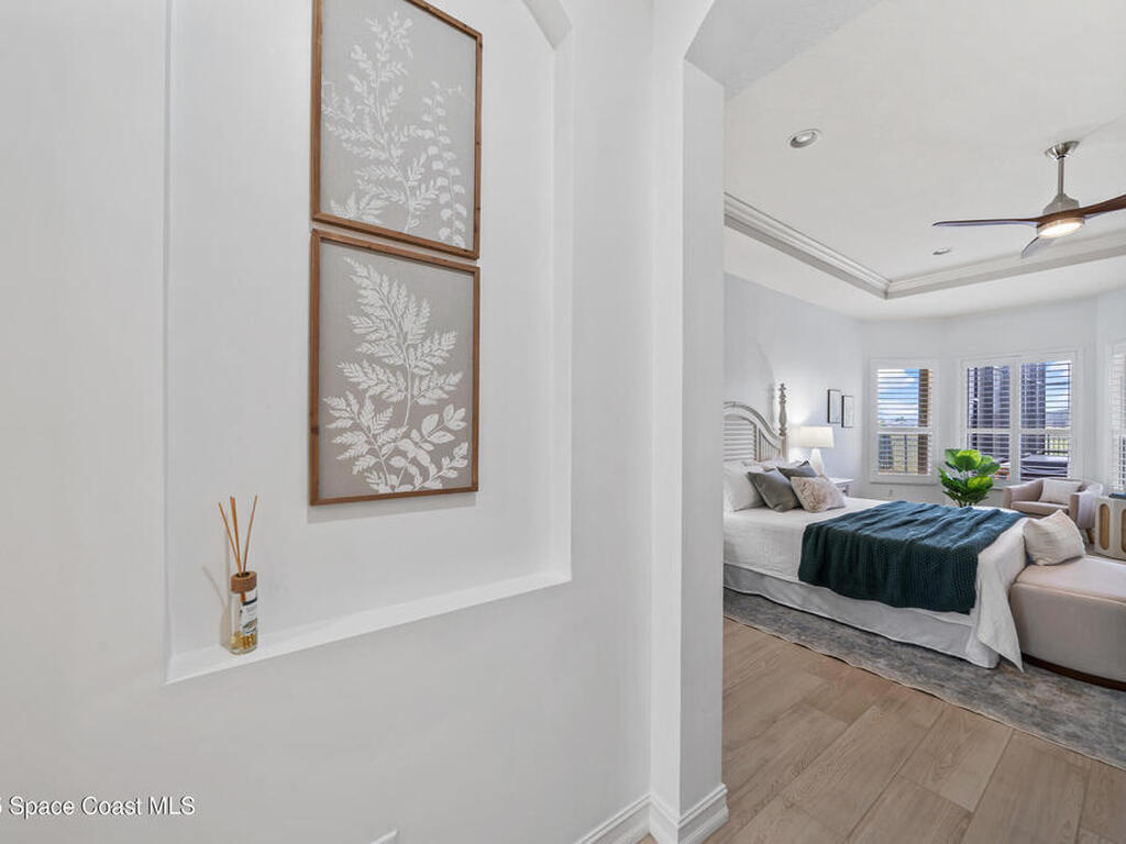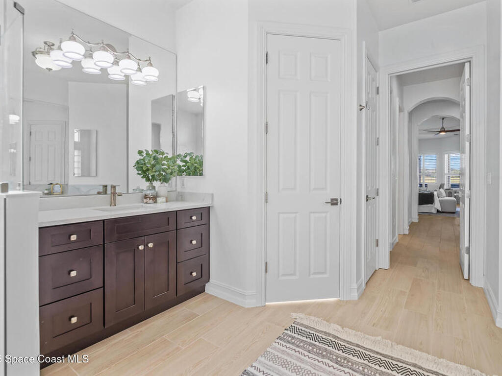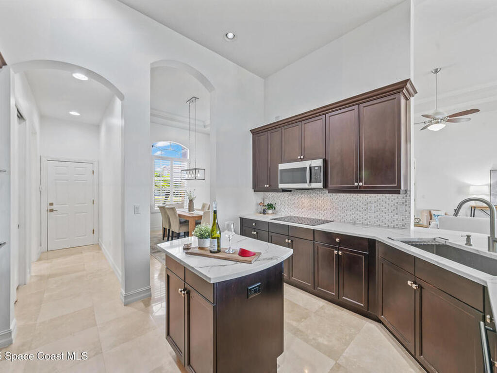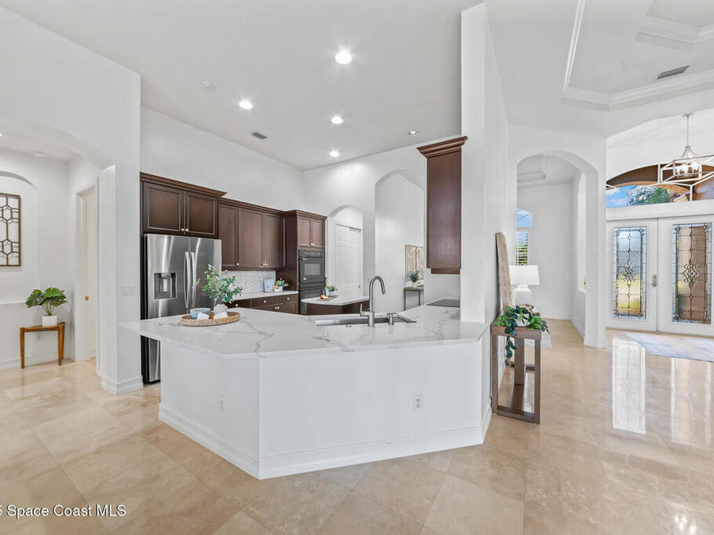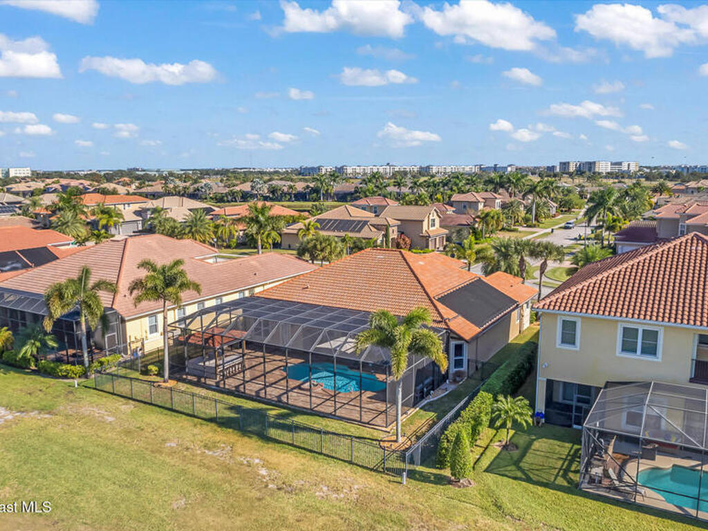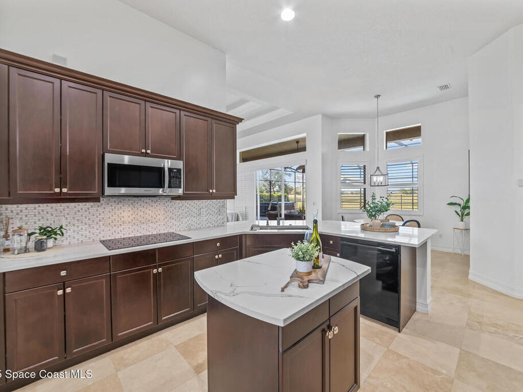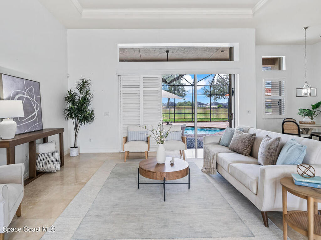 A rare find with the Duran Golf lifestyle is a perfectly positioned home overlooking the 8th hole! This Fairway Lakes beauty is truly above PAR! Inside, the home features 3 bedrooms and 3 full bathrooms, including a spacious primary suite and an additional en-suite bedroom. A versatile flex/office space with a Murphy bed offers the ideal setup for guests or work-from-home convenience. The expansive screened outdoor area is made for Florida living, complete with a solar-heated pool, outdoor kitchen, and stunning golf course views. Additional highlights include a tile roof, circular driveway and an American Home Shield warranty already in place for the new owners. Golf cart to the Duran Golf Club or to the Viera Avenue for dining and endless entertainment!This home is in the cul-de-sac which is perfect for overflow parking or easy access to the golf course!Close to hwy 95, 25 minutes to the beach or Port Canaveral, 45 minutes to Orlando. This home is a rare gem!