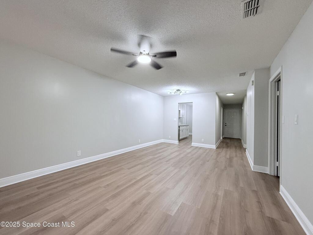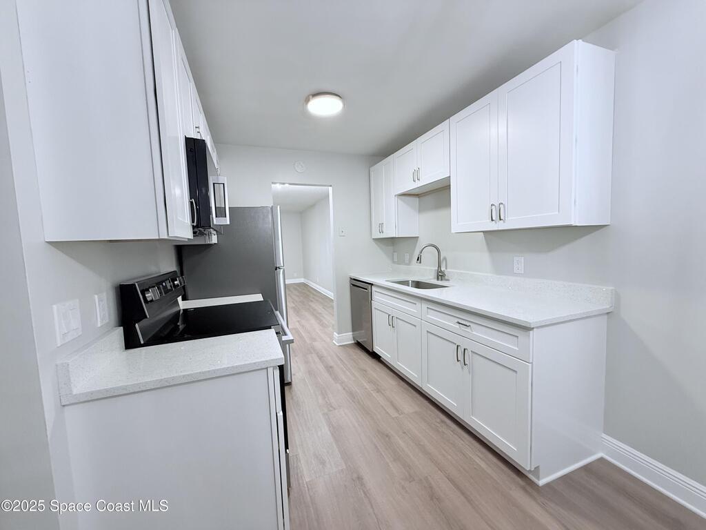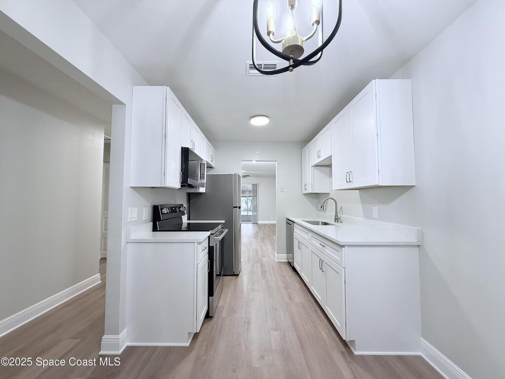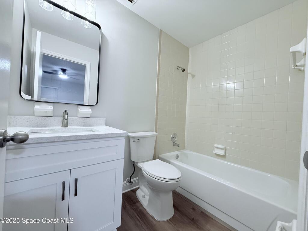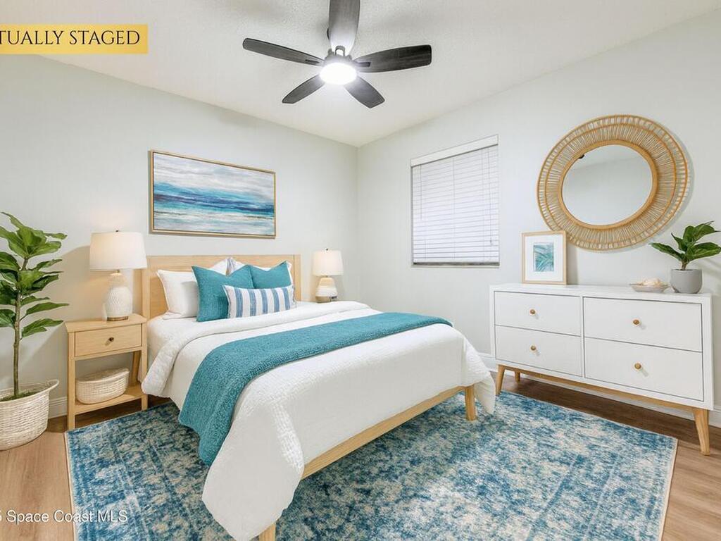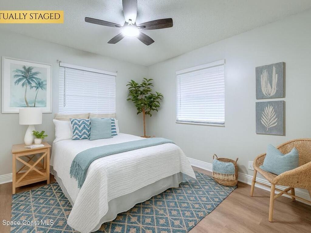 Absolutely stunning and fully remodeled! This beautifully updated 2-bed, 2-bath townhome is truly move-in ready, featuring a NEW AC (2024), freshly painted interior, white shaker cabinets, quartz countertops, new lighting fixtures, updated bathrooms, and vinyl plank flooring throughout. Enjoy a screened back porch and private laundry room for added convenience. Light, bright, and impeccably maintained, this home offers low-maintenance living in a prime location near Kennedy Space Center, Orlando International Airport, shopping, dining, schools, and the area's gorgeous beaches. A fantastic opportunity for comfort, convenience, and value!