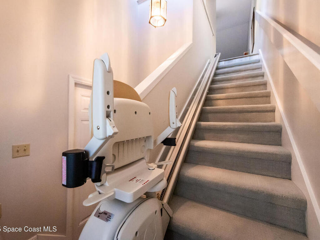 FULLY FURNISHED! Beautiful 2 bedroom 2 bathroom second floor condo in the La Cita Haciendas Community. This clean, well kept, updated second floor unit offers comfortable living in a quiet and friendly complex. The home features two spacious bedrooms, two full bathrooms, and updated kitchen. Enjoy peaceful mornings and relaxing evenings on the back porch overlooking the golf course. For added convenience and accessibility, the stairs are equipped with an automatic seat stair lift, making the home an option for older individuals or anyone needing easier access. Located in the heart of town you'll appreciate the proximity to US-1, local shops, restaurants, and even rocket launch viewing spots. This is a simple, clean, move in ready home that's sure to make a wonderful place for its next owner. Don't miss this one, come see it today!