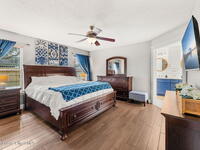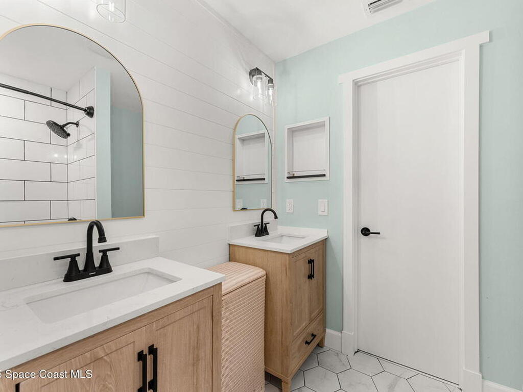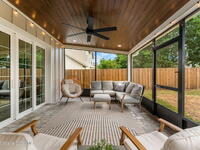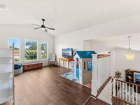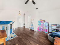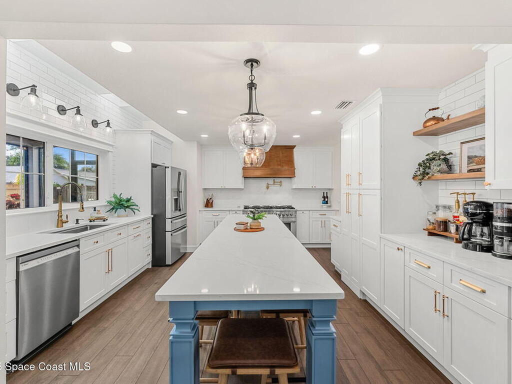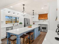 Two-story living with 2, 473 sq ft delivers the layout everyone wants: a downstairs primary suite w/ walk-in closet, 3 bedrooms plus a dedicated office & an upstairs flex space that can easily convert to a 4th bedroom, all anchored by a kitchen finished with quartz counters, skylights, under-cabinet lighting, a walk-in pantry with custom faux-cabinetry detail & a statement 48'' dual-fuel double-oven range w/ custom wood hood & pot filler. The main level is dialed in with expanded recessed lighting, upgraded trim throughout & wood look plank tile flooring w/ color-sealed grout, while the primary bath brings spa energy with marble tile & a multi-head shower setup; upstairs adds newer carpet, a flexible bonus area with access to a fully renovated bathroom, plus a laundry room that feels intentionally designed with brick flooring & a shiplap ceiling.