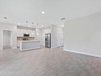Welcome to the epitome of the relaxed Floridian lifestyle! This immaculate 4-bedroom, 2-bathroom home offers the perfect blend of comfort, style, and outdoor living in one of Florida's fastest-growing cities. Nestled on a generous 1/4 acre lot in a quiet neighborhood, this move-in ready retreat provides a private oasis for both relaxation and entertaining. Step inside to an inviting open-concept living space flooded with natural light, featuring wood like plank tiles throughout the entire home and 9'4 Ceilings. The spacious floor plan flows seamlessly into a chef-friendly kitchen, complete with Quartz countertops, stainless steel appliances, a large center island, making meal prep a delight. Beat the Florida heat in your sparkling private pool, which can add significant value and appeal to your home in this climate. The screened lanai/covered patio is an ideal spot for morning coffee, family BBQs, or simply relaxing by the water, offering a true extension of your living space.