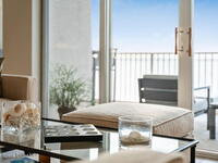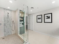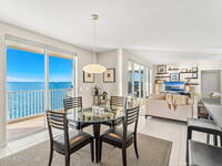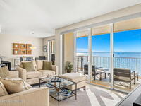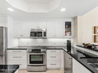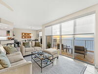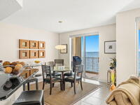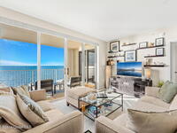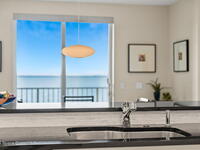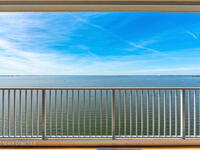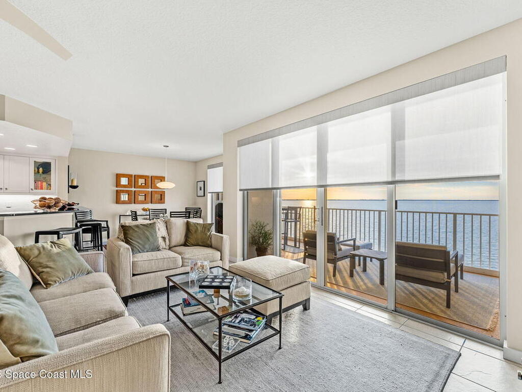 WIDE, OPEN living spaces and unforgettable sunset views define this TOP-FLOOR residence at Solana on the River. This RARE extra-wide three-bedroom, three-bath floor plan delivers an expansive, airy feel the moment you enter, with 9-foot ceilings, 8-foot sliders, and walls of riverfront glass drawing your eye straight to the water.Thoughtful upgrades continue throughout the home, including contemporary ceiling fans and remote-controlled shades on the living and dining room sliders -- offering comfort, convenience, and effortless control of light and privacy.The beautifully updated kitchen features polished black quartz countertops, JennAir and Bosch stainless appliances, a built-in wine cooler, updated shaker-style cabinetry, and excellent flow into the dining and living areas. Plush carpeting runs throughout (except for tiled spaces), bringing warmth and comfort to the residence.