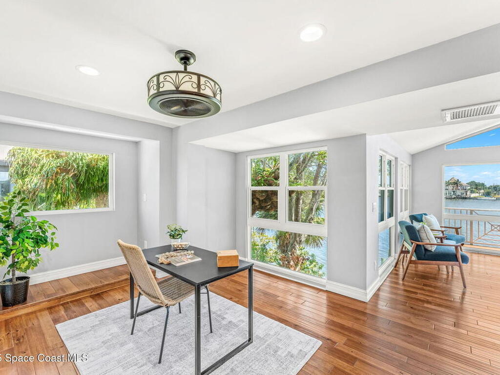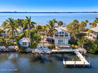The pinnacle of Merritt Island! Rare opportunity on prestigious Dragon Point! Experience the river to river lifestyle with both sunrise and sunset views. 10k and 20k lift on Indian River and fishing dock on Banana River. Taken to the studs and remodeled floorplan allow modern conveniences such as vaulted ceilings, large closets, indoor laundry and home office space. Wrap around balconies provide plenty of space for outdoor living! Large family room and oversized dining room are perfect for entertaining friends and family. Detached cottage/accessory dwelling unit (ADU) is the perfect MIL suite, office, guest house, etc. Fenced yard, bring the pups! Poured solid concrete construction, metal roof, rebuilt sea wall. Mather's Bridge provides easy access beachside dining, quaint shops and amenities.