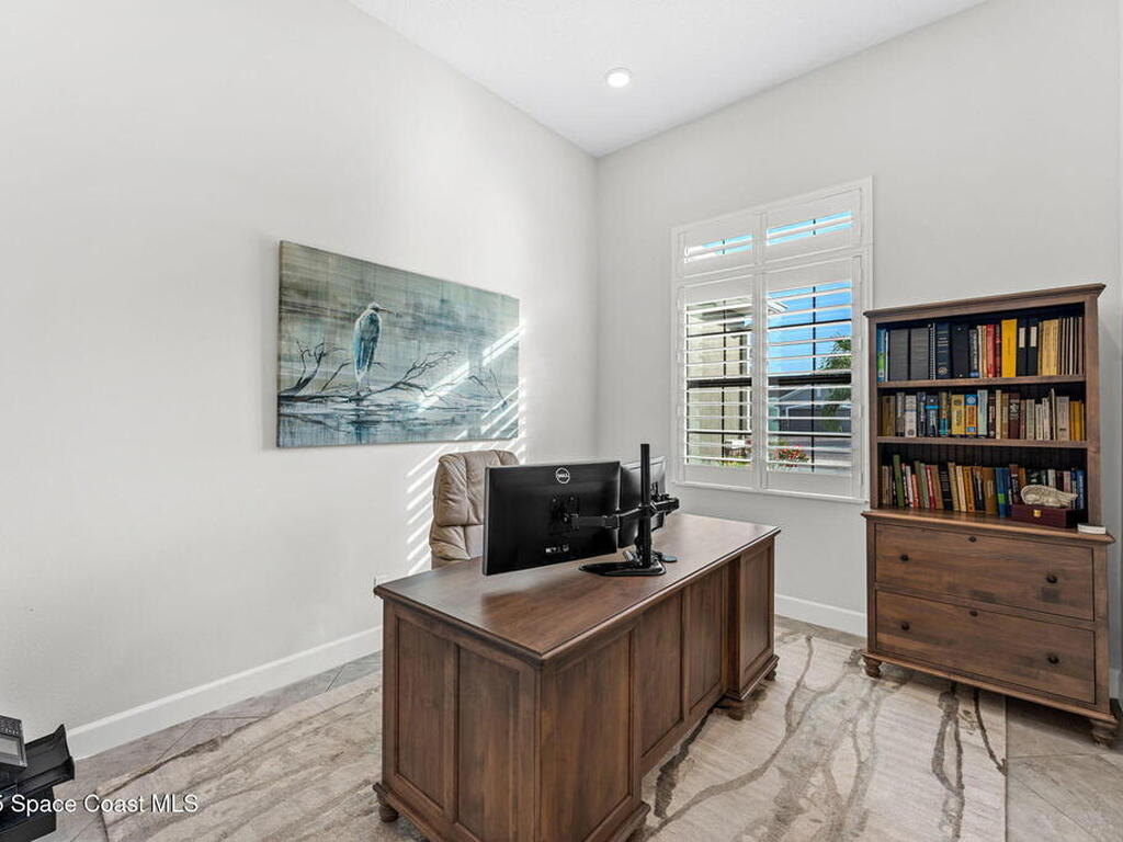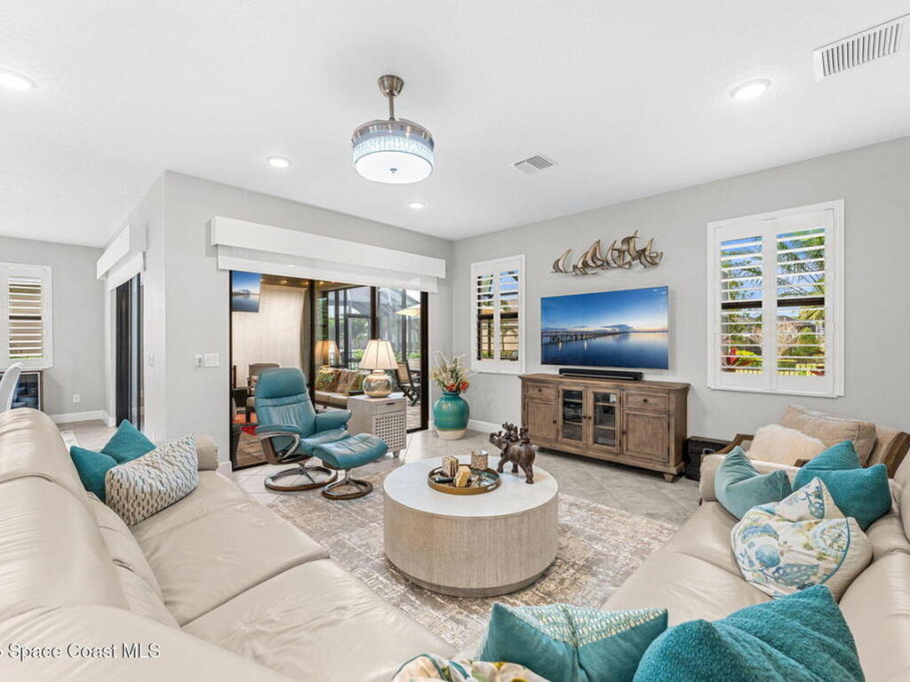 Nestled in the heart of Viera with Addison Village amenities, walking trails, and top-rated schools just moments away, this is more than a home--it's the effortless lifestyle you've been waiting for. From the inviting screened entry to the peaceful water views, every space feels intentional and welcoming. Inside the bright open layout centers around a thoughtfully updated kitchen--featuring new cabinetry, stunning countertops, a designer hood, and a spacious island perfect for everyday gathering. A flexible bonus room offers the freedom to create a home office, study, playroom, or fourth bedroom, while the serene primary suite includes custom closets and a calming connection to the outdoors. Step outside to an extended screened patio, upgraded landscaping, premium turf, and a fenced yard--an ideal retreat for quiet mornings or entertaining friends. This home is elevated by countless enhancements: make sure to see the Feature Sheet included for a list of all this home has to offer!