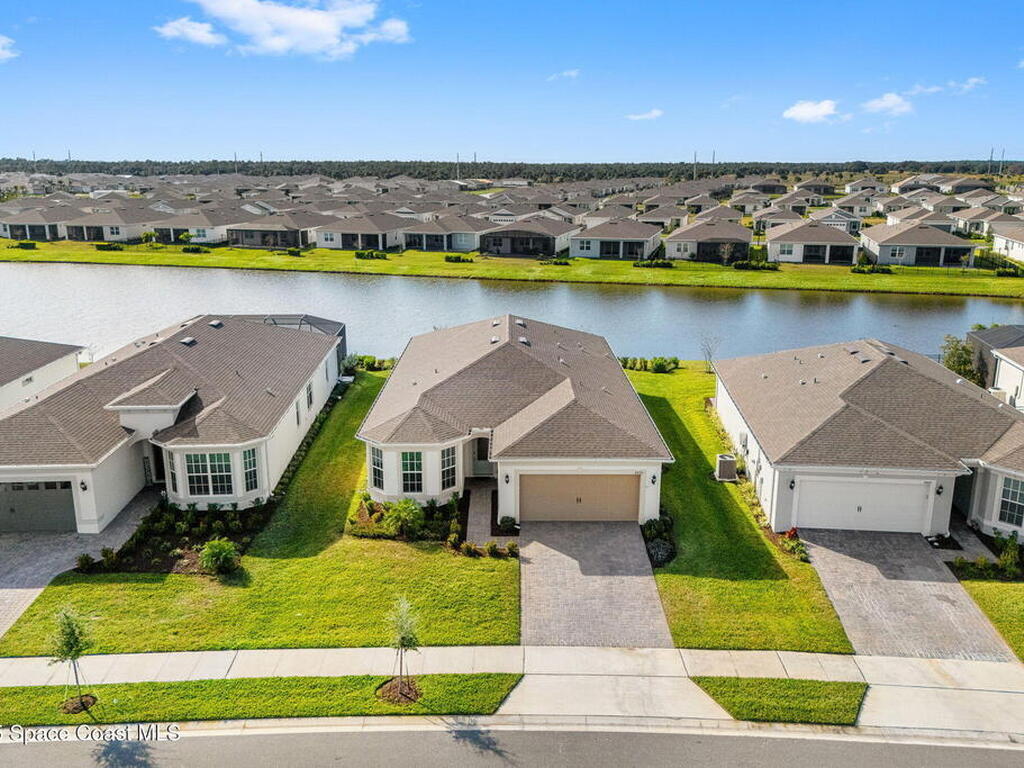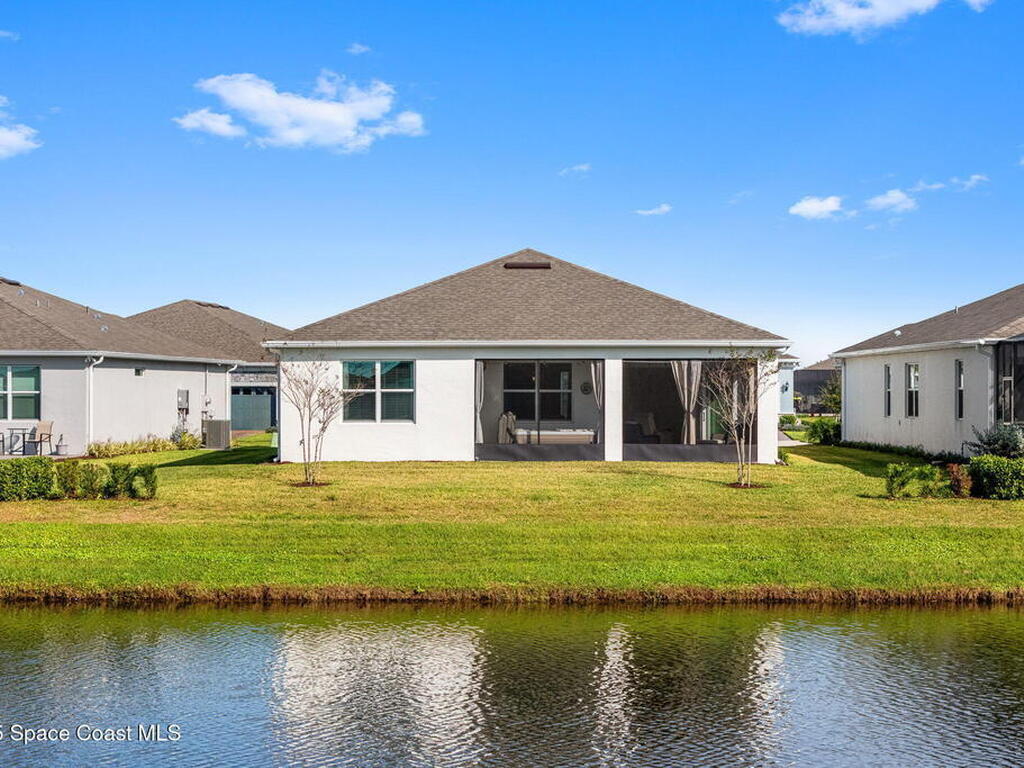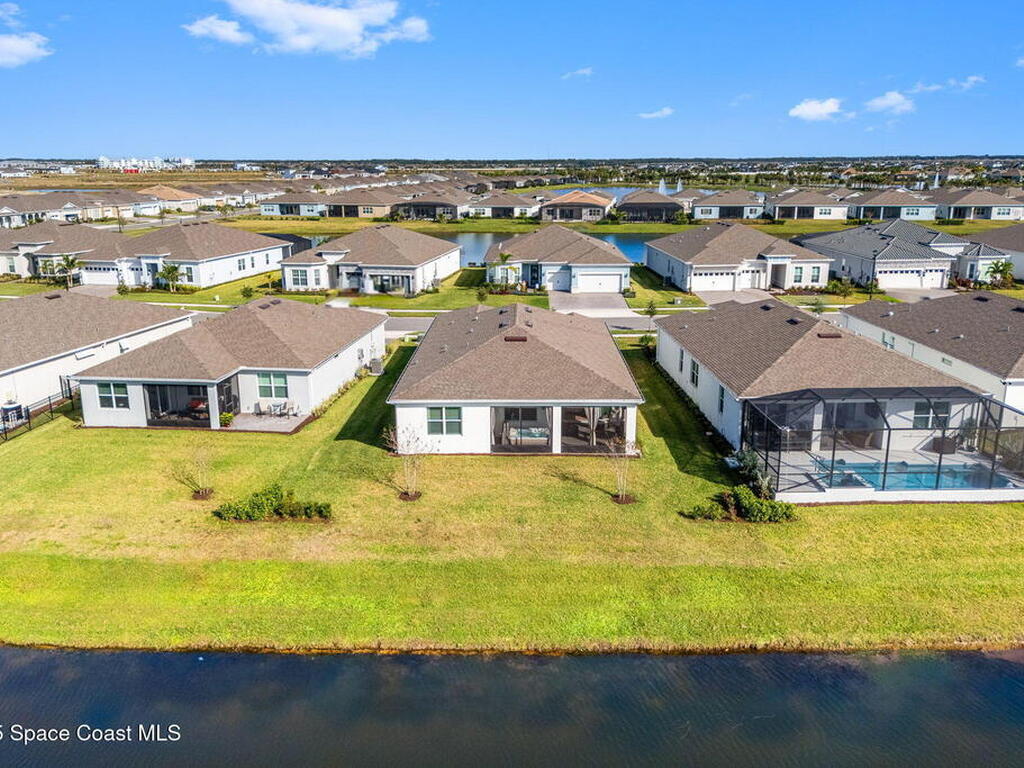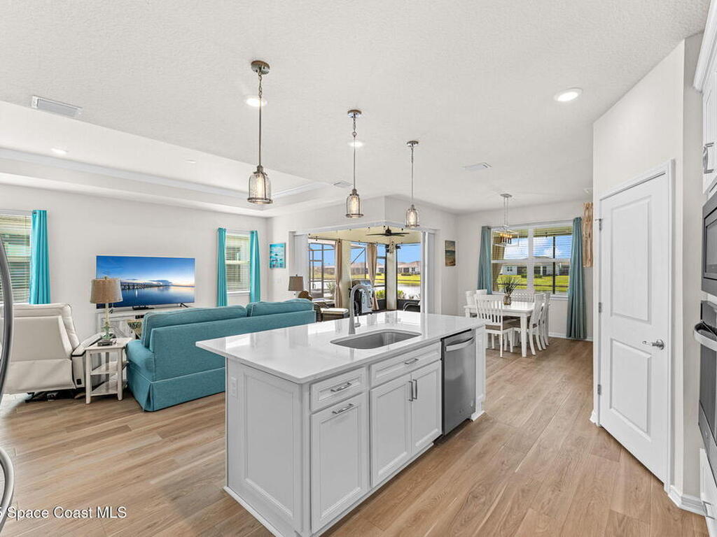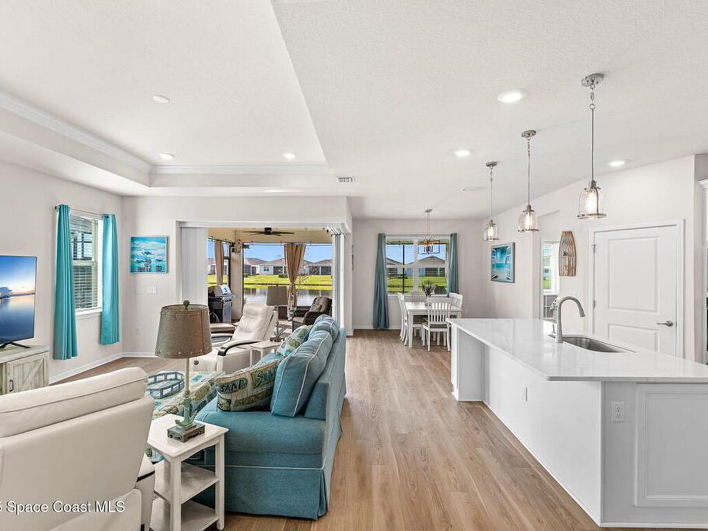Welcome to lakefront living at its best in Del Webb Viera, one of Florida's premier 55+ active communities. This beautifully extended Mystique floor plan offers remarkable value--delivering three true bedrooms, three full baths, and a versatile flex room without having to move up to a more costly model to gain the extra space. It's the ideal blend of smart design and everyday luxury. Step inside to an open, airy layout where the family room, dining area, and kitchen flow seamlessly together. Expansive disappearing sliders extend the entire living experience outdoors, opening to an oversized screened lanai with a relaxing hot tub and sweeping lake views. Inside, you'll find updated flooring, gorgeous upgraded white cabinetry, and a crisp coastal aesthetic that feels both elevated and inviting. It's a perfect home for an active couple--with plenty of comfortable space for visiting family and friends. Living in Del Webb Viera means embracing a lifestyle rich with amenities and connection.