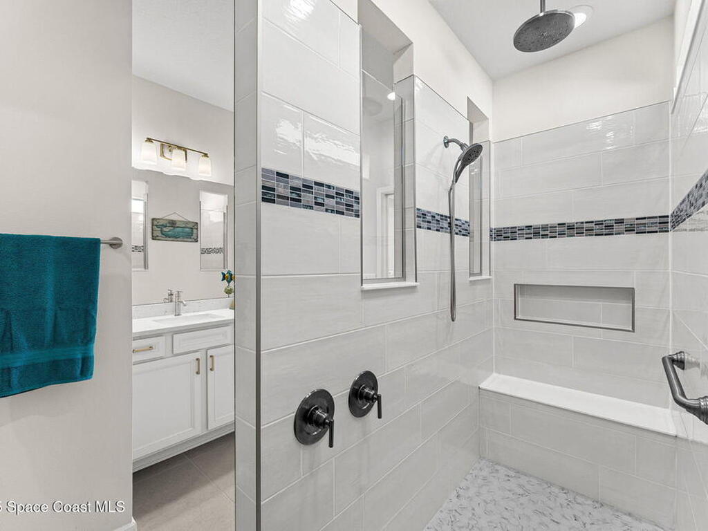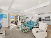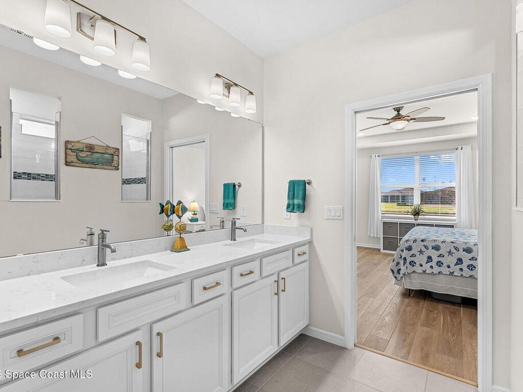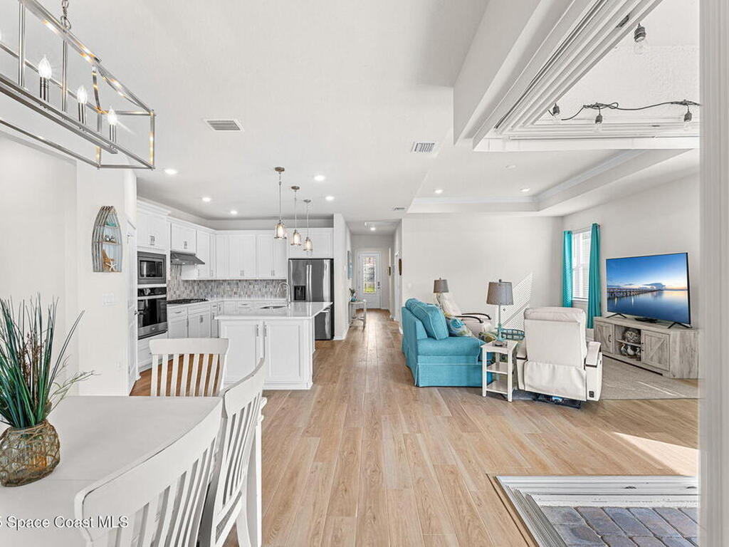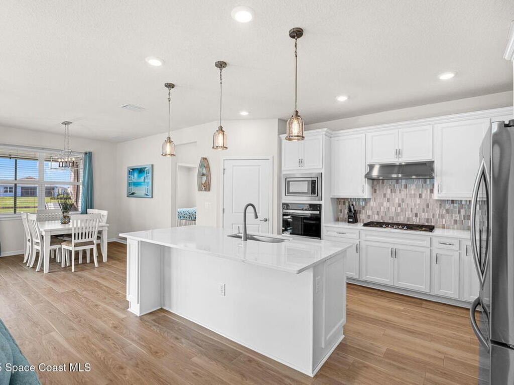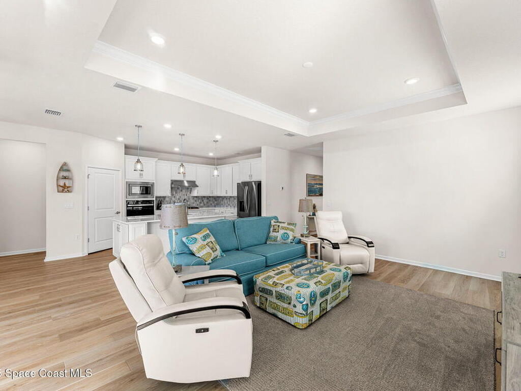 Welcome to lakefront living at its best in Del Webb Viera, one of Florida's premier 55+ active communities. This beautifully extended Mystique floor plan offers remarkable value--delivering three true bedrooms, three full baths, and a versatile flex room without having to move up to a more costly model to gain the extra space. It's the ideal blend of smart design and everyday luxury. Step inside to an open, airy layout where the family room, dining area, and kitchen flow seamlessly together. Expansive disappearing sliders extend the entire living experience outdoors, opening to an oversized screened lanai with a relaxing hot tub and sweeping lake views. Inside, you'll find updated flooring, gorgeous upgraded white cabinetry, and a crisp coastal aesthetic that feels both elevated and inviting. It's a perfect home for an active couple--with plenty of comfortable space for visiting family and friends. Living in Del Webb Viera means embracing a lifestyle rich with amenities and connection.
