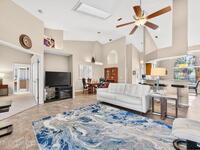 Welcome to a home that truly has it all--beauty, space, and an unbeatable setting. From the moment you arrive, the extra-long driveway and majestic oak trees set the tone for something special. Step inside and you're greeted by a bright, open floor plan highlighted by vaulted ceilings and skylights that fill the living space with natural light. The kitchen is a showstopper with stunning quartz countertops, an eat-in breakfast nook, and a dedicated dining room perfect for gatherings. Every detail adds comfort, from fans in every room to plantation shutters in both guest bedrooms. The primary suite is a serene retreat featuring a spacious layout, a walk-in closet, a luxurious walk-in shower, and a soaking tub that invites you to unwind. The second bathroom continues the elevated feel with quartz counters and a walk-in shower. Enjoy peace of mind with a 2022 roof, 2016 A/C, and a 2024 water heater. Outside, the lifestyle continues with a screened-in porch and a beautiful paver patio with